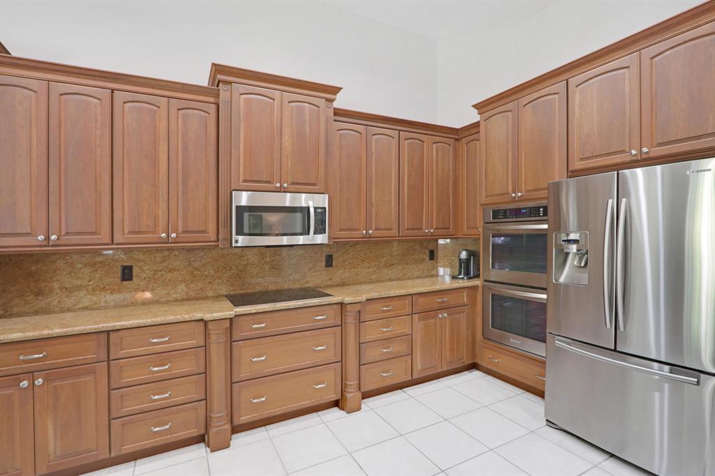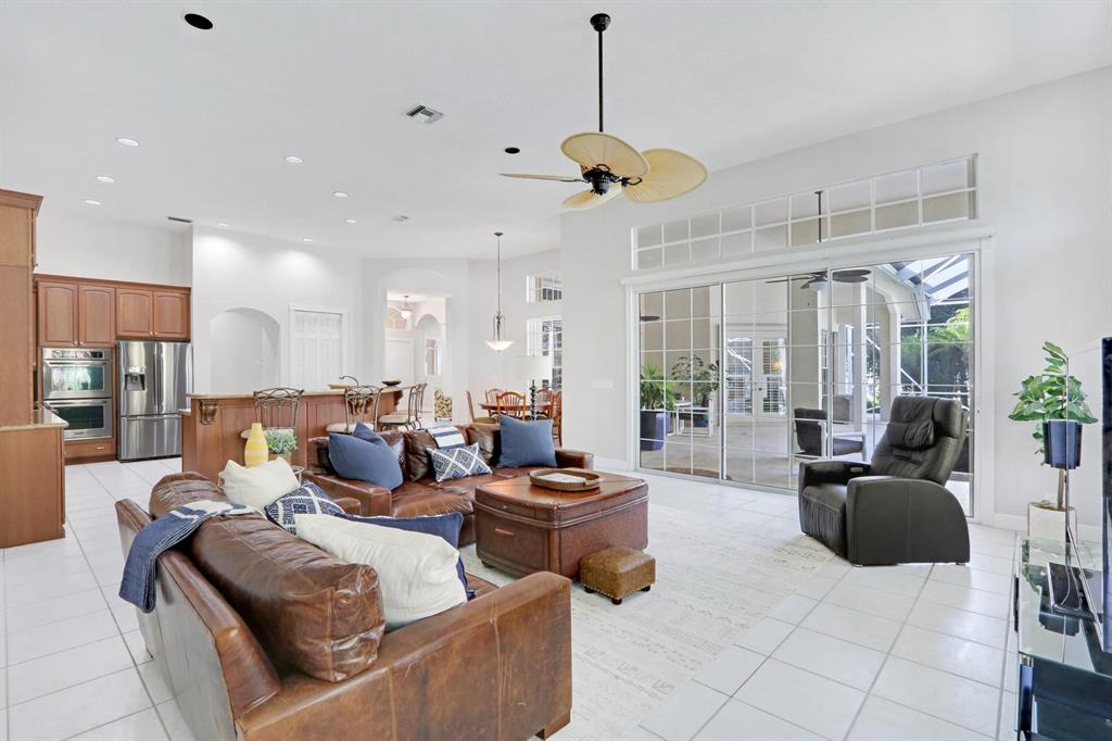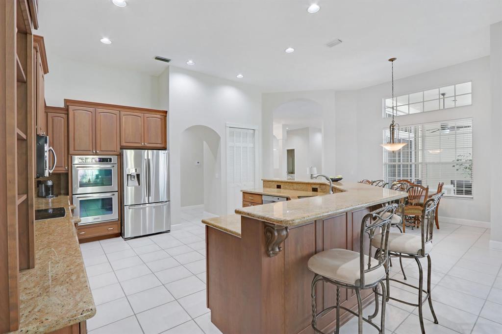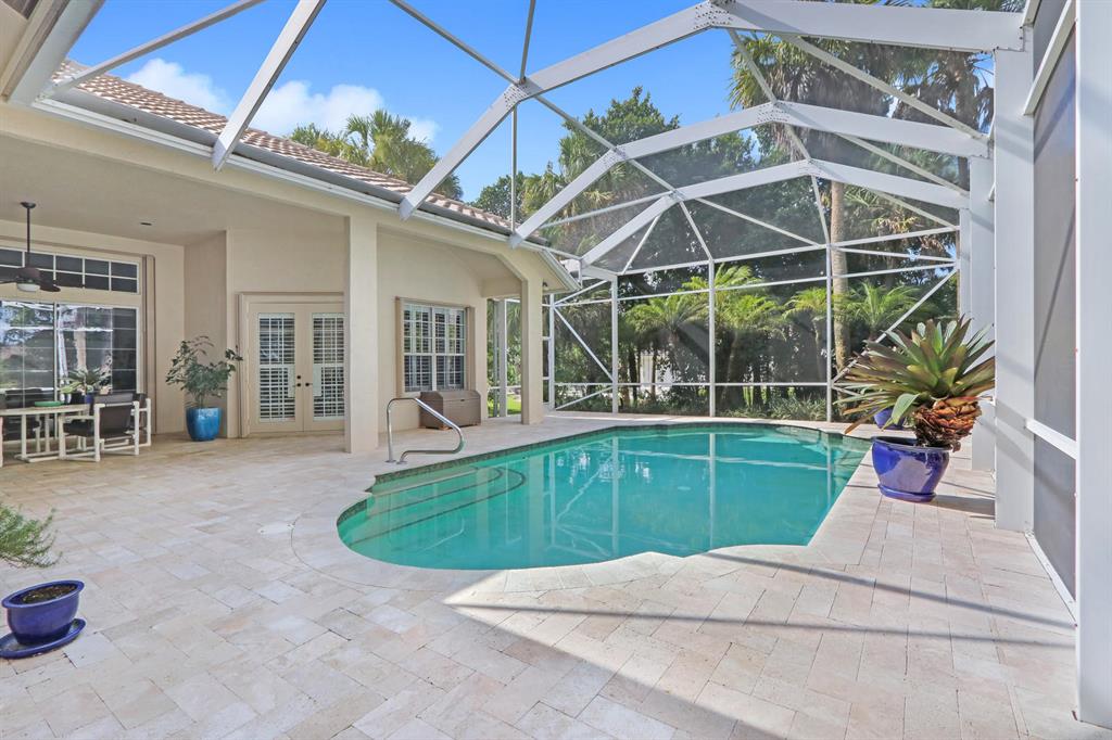 Gorgeous and immaculate five-bedroom, four-bath, three-car garage stunner situated on a beautifully landscaped half-acre lot. Centrally located near shopping, restaurants and A-rated schools. The lush yard is framed with mature trees and a tall, manicured privacy hedge. Large, exterior front double-door entryway with stone columns leads into a bright and gorgeous living room with soaring ceilings and large windows overlooking the screened, heated pool and patio. Giant, newly renovated kitchen has an abundance of 42-inch walnut cabinets, granite countertops, breakfast bar, double wall ovens and stainless steel appliances. Kitchen and family room share an expansive open floor plan, the latter spilling out to the pool and patio through sliding glass doors.