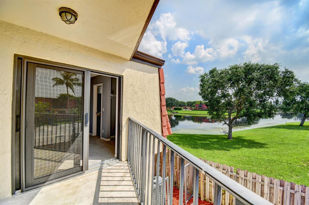 Nicely updated townhome in WPB, close to everything! Hurricane impact windows, brand new white shaker kitchen, with brand new granite counters, and stainless steel appliances. 18''X18'' cream color tile throughout the first floor, and brand new soft grey carpeting upstairs. Half bath with new vanity and lighting, full size front load washer and dryer in the unit. Enjoy partial lake views from both bedrooms, each with their own private bathroom and balcony. Great patio space for entertaining. Come see this home today!