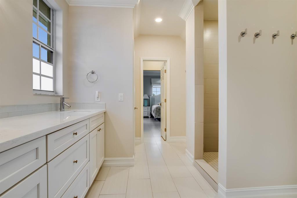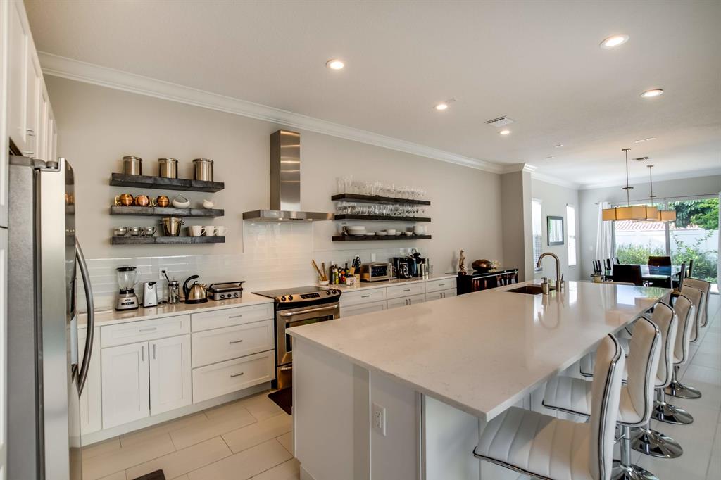 This sophisticated coastal contemporary home is ideally located on the island of Palm Beach Shores within walking distance to the beach, inlet and intracoastal, marinas, resorts and parks. With six bedrooms, four and a half bathrooms, 4-car garage, a brand-new pool out back, and massive atrium with ultra-13x13 in-ground spa, this estate has it all. Additionally, there is a separate guest suite with private side-entrances. The home boasts opulent spa-like bathrooms with elegant contemporary-Moen plumbing fixtures and gorgeous George Kovacs / Minka lighting, making this household perfect for entertaining.