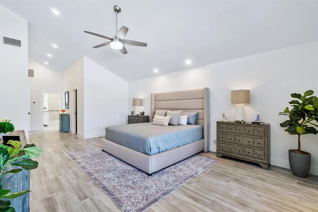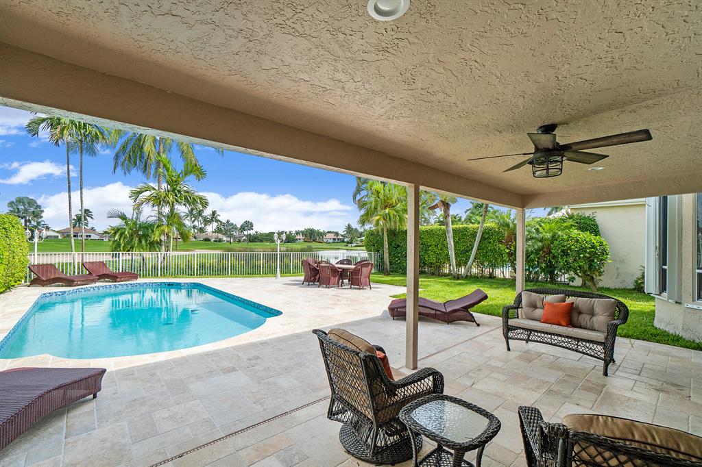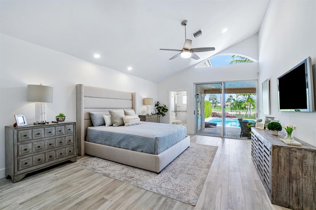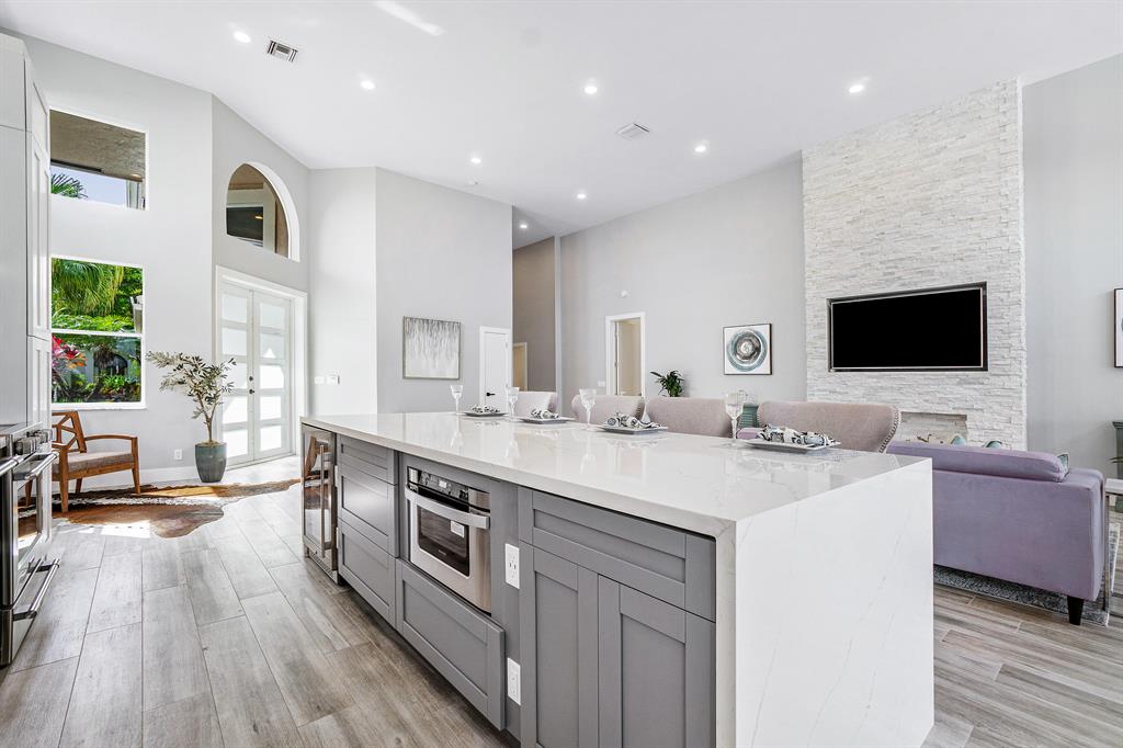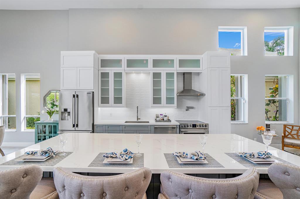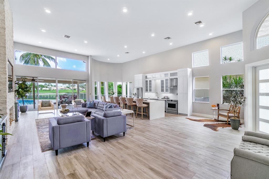 Outstanding long vistas of golf course and lake views are the backdrop to this one-story gem that is situated on one of Polo Club's most charming streets. The brilliantly re-imaged open and modern concept of this completely remodeled home offers soaring ceilings and sun-drenched rooms. An impactful stone feature wall sets off the great rooms dynamic balance juxtaposed by a waterfall edge kitchen island. The master suite encompasses his/her separate bathrooms and closets with access to the patio and the wide open views.