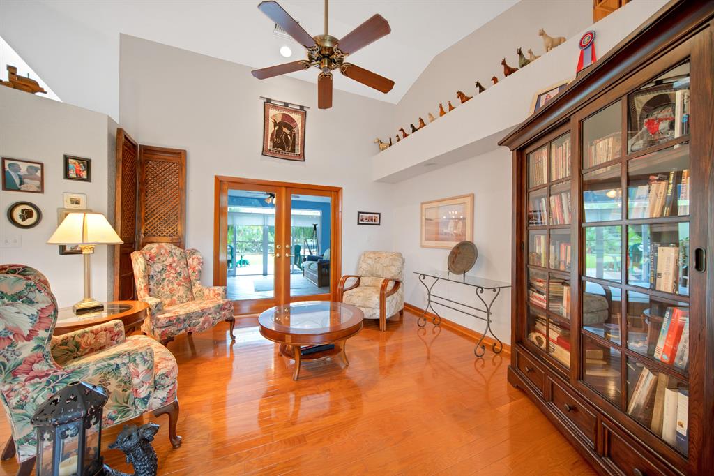 All sizes approx. One of Caloosa's best laid out equestrian properties! Over Five Acres with mature oak trees and large green pastures that will excite you and your horse!Eight stall CBS center isle barn with feed room, A/C tack room, hay room, full bath and a lounge that can easily be converted to grooms quarters. Stalls have run outs, water and fans.Property is completely fenced and cross fenced. Cement paved driveway for easy in and out with the horse trailer!Property is a short hack to the Caloosa equestrian center! Home is of perfect size offering 3 bedrooms 2 baths,formal living and dining room, large family room and a Florida room that brings the outside in. Overflowing with natural light this area will by a favorite by all! PLEASE SEE SUPPLEMENT FOR MORE DETAILS
