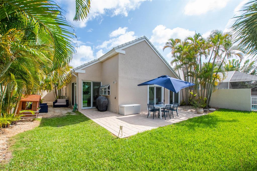 Natural light filled, updated 3 bedroom, 2 bath, 2 car custom garage home in the peaceful, private and secure community of Breakers West. This welcoming home has beautiful lake views, boasts french pattern travertine floors throughout kitchen and living areas. Pergo flooring in all 3 bedrooms. All sliding doors have been updated to solar blocking impact sliding doors. New concrete roof and new fencing in 2016. New AC unit and updated master bath in 2018. Close to turnpike. Palm Beach is 20 minutes away. Beach is 25 minutes, Wellington is 10.Perfect for all. Truly a must see!
