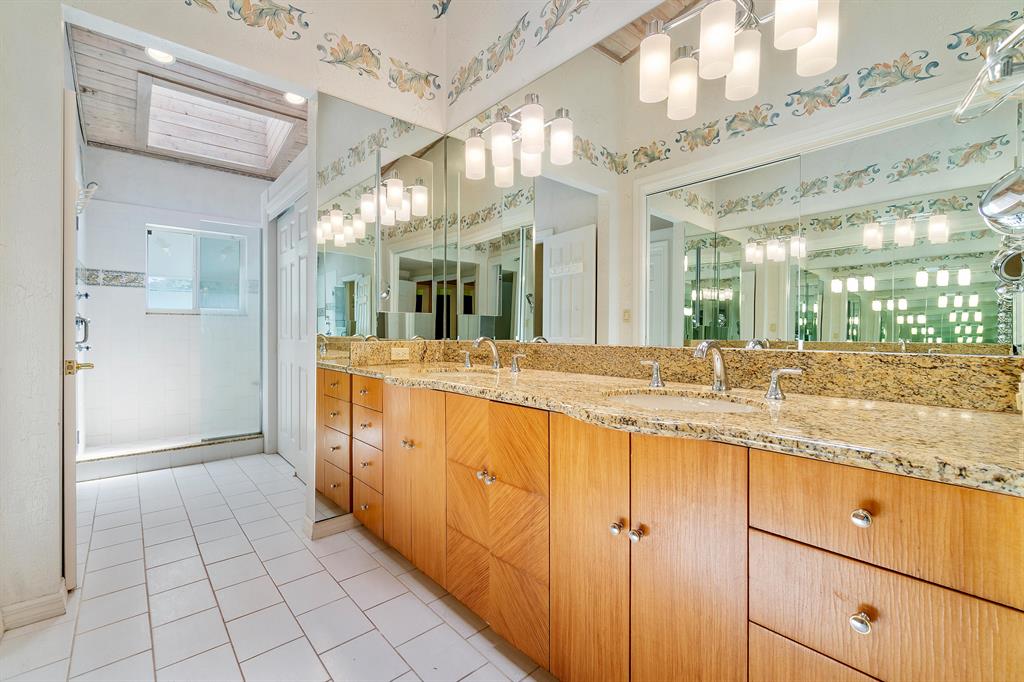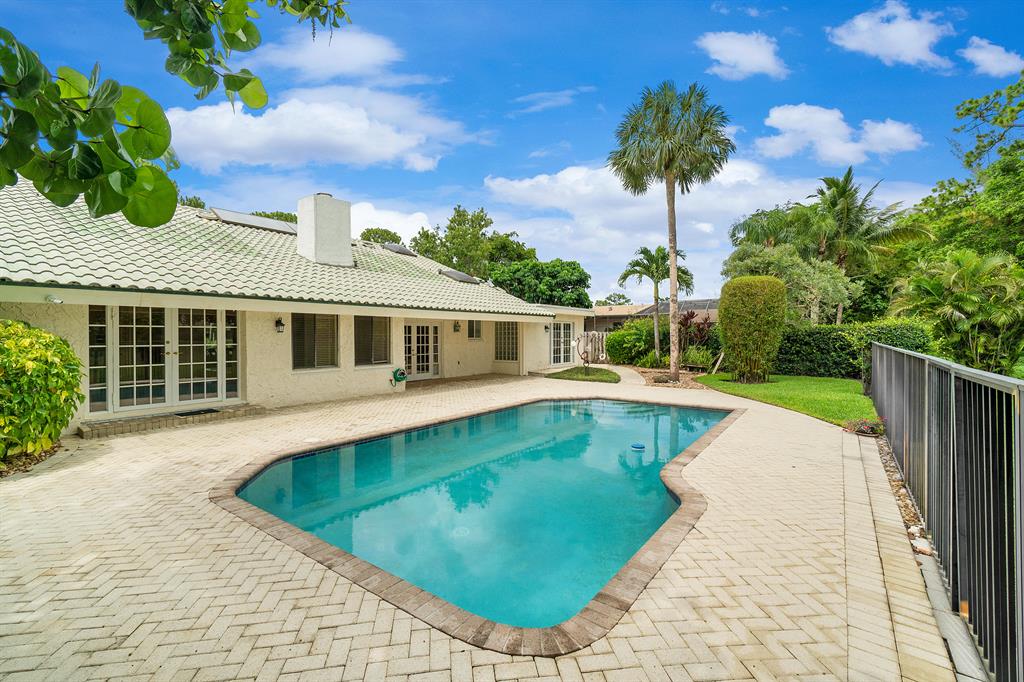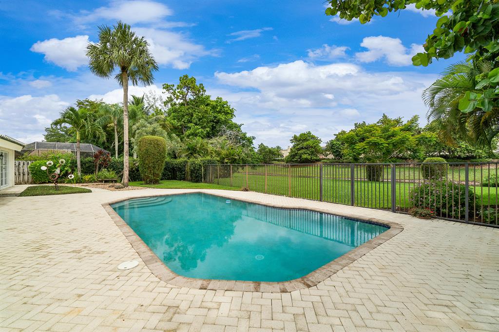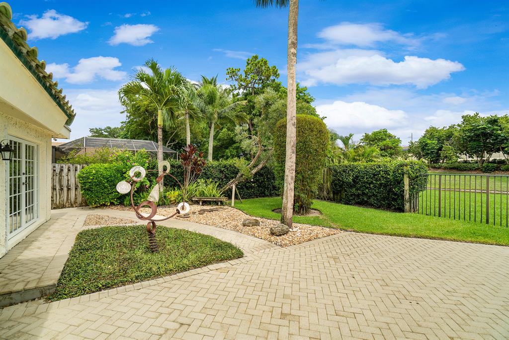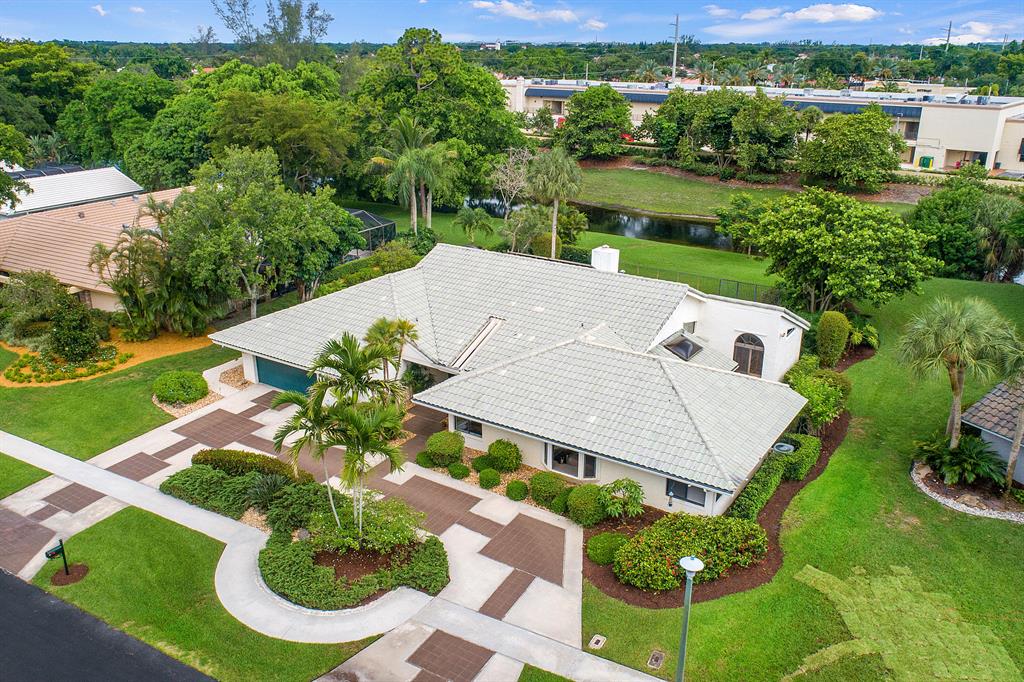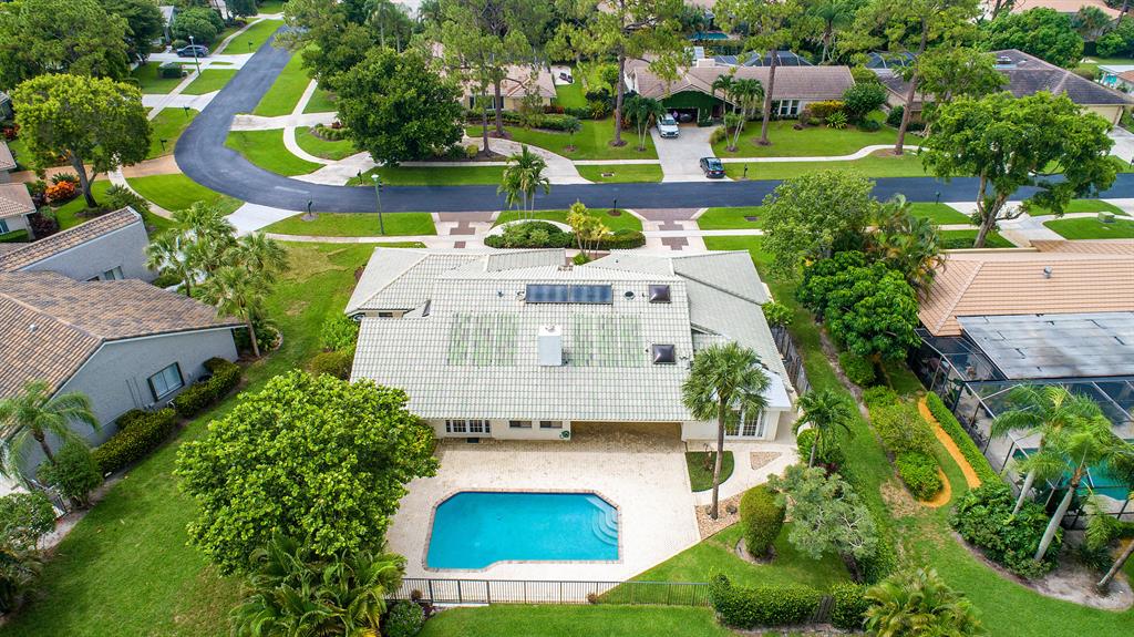 Located in one of Central Boca's most desirable Gated communities with sidewalks-Estancia South.This custom split 4 Bedroom,2 full baths and 1 half bath,2 car garage offers everything you could possibly want and much much more!A grand and impressive backyard includes with NO REAR NEIGHBORS. Huge Master suite with sitting area. Vaulted wood ceilings with skylights. Ceramic tile, hardwood floors and stained concrete flooring. Living room with fireplace.Newer kitchen with Stainless Steel appliances Bosch dishwasher, Sub Zero refrigerator Viking Stove. 2 zoned AC,Hurricane Panels, Butterfly garden, and access to Estancia's parks.Walking distance to houses of worship.House is on a natural rige 17' above sea level A must see in an A rated school district