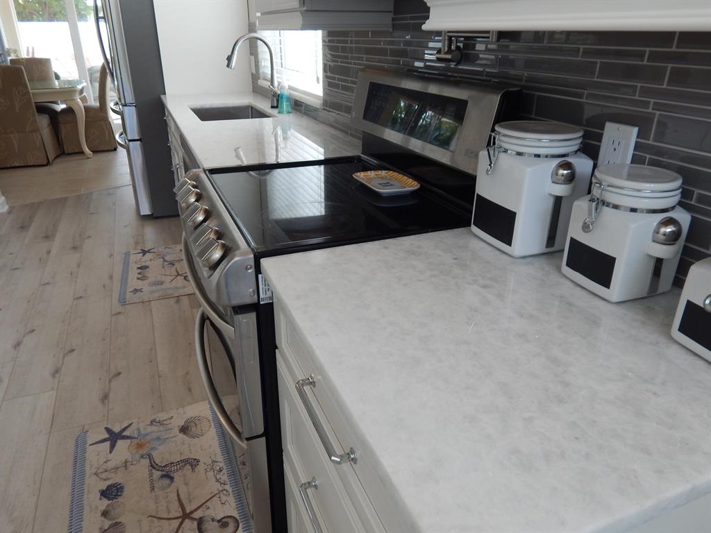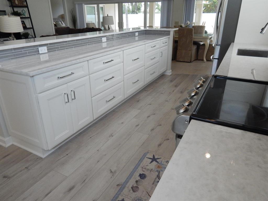 IMPACT GLASS throughout the home! This house was just remodeled this year and feels like a brand new home. New marble counter tops, 42 inch custom hardwood cabinets. New wood look tile flooring in the 5 star kitchen with stainless steel appliances. Tile throughout the living area and bedrooms. Dual sinks in over sized master bath, private walk out to covered patio from master along with custom built in California closets. Volume ceilings in open great room with new paint. Private low maintenance outdoor space with outdoor turf and pavered deck plus a covered screened in patio, the best of worlds when enjoying the South Florida weather. New blinds throughout. New air handler, new insulation, new air ducts with return vents. Great central location 10 mins from Downtown West Palm!