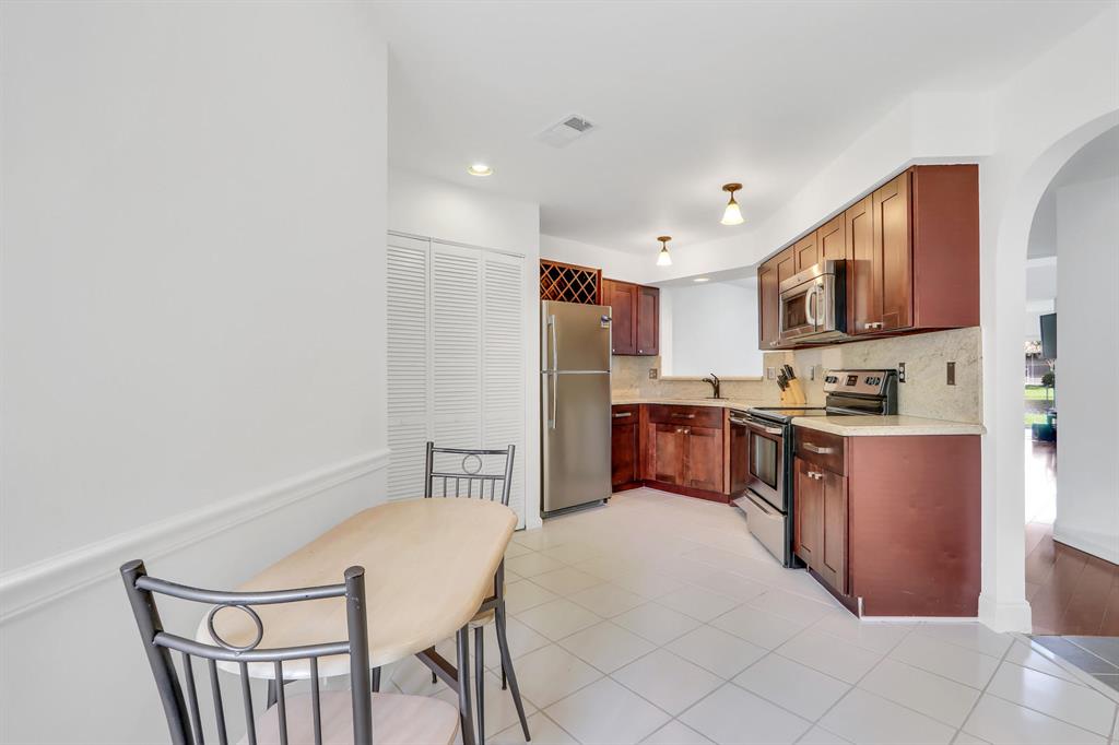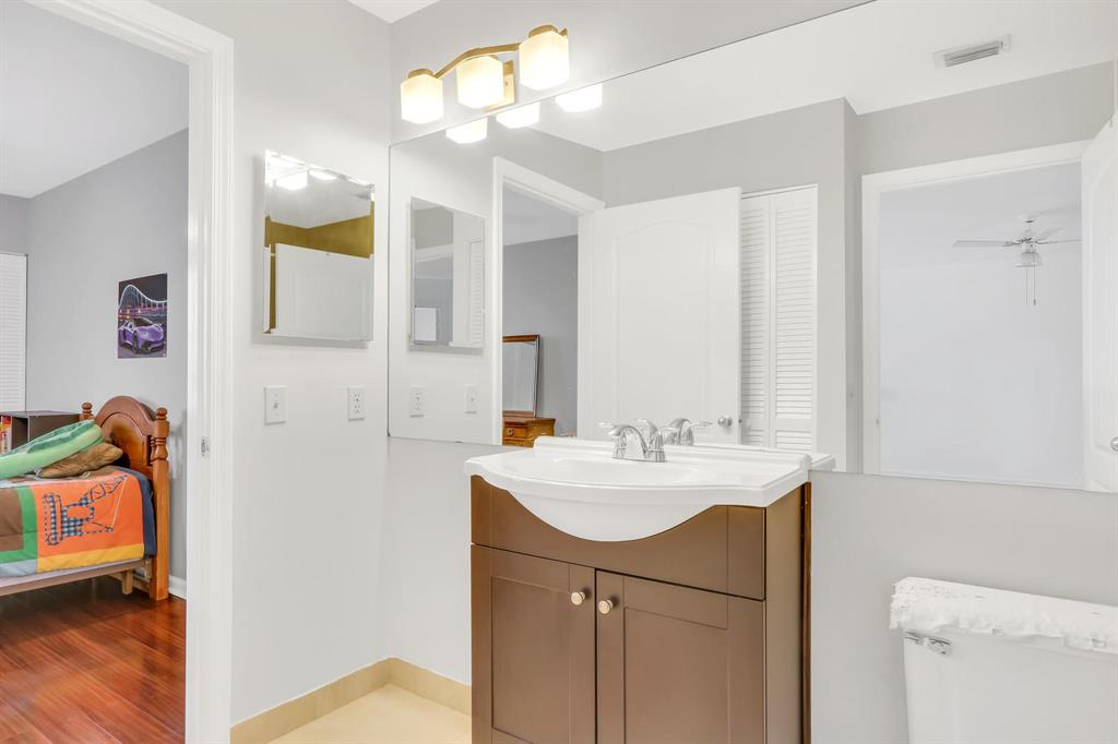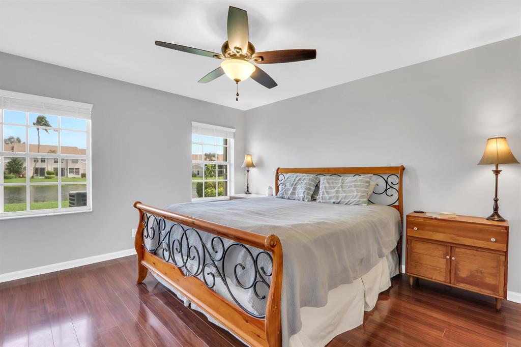 Beautiful 3 bedroom 2.5 bath townhouse with views of the water from every room. Master bedroom situated on the 1st floor with renovated master bathroom. Stainless steel appliances. Open loft on the 2nd floors with two bedrooms and a bath. Garage has been converted into a den/storage room, which can easily be converted back to a garage by new owner. Newly renovated tile in the entrance way and back door. This home is located close to the clubhouse with a pool, fitness room, tennis court, and basketball court. Boca Gardens is a pet friendly community.