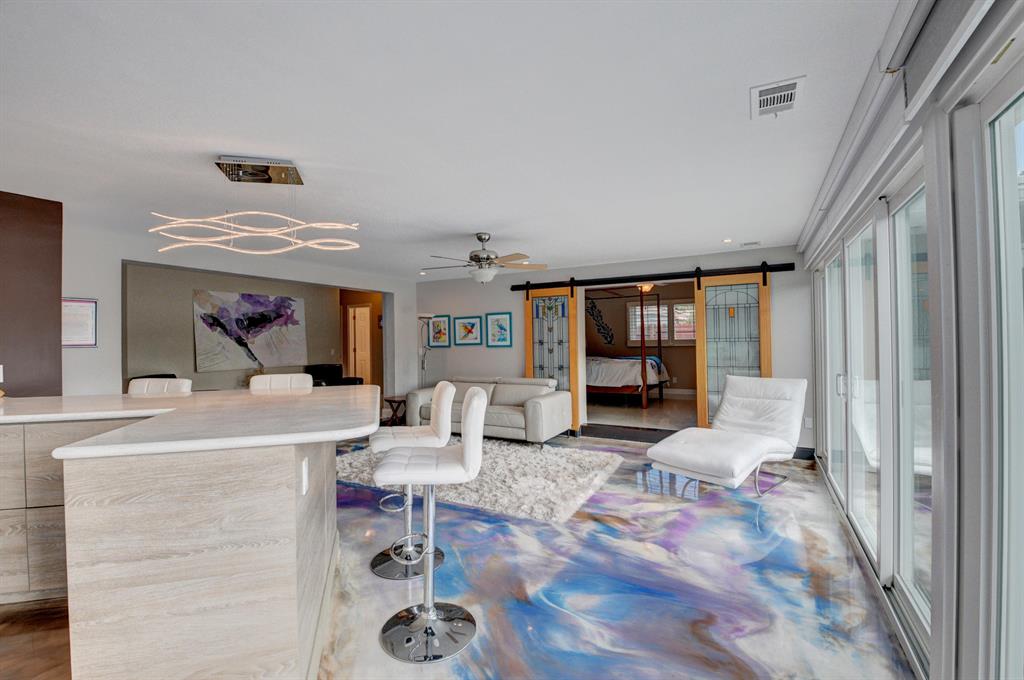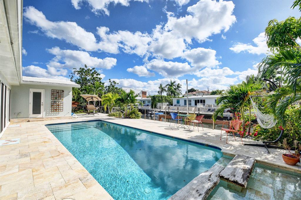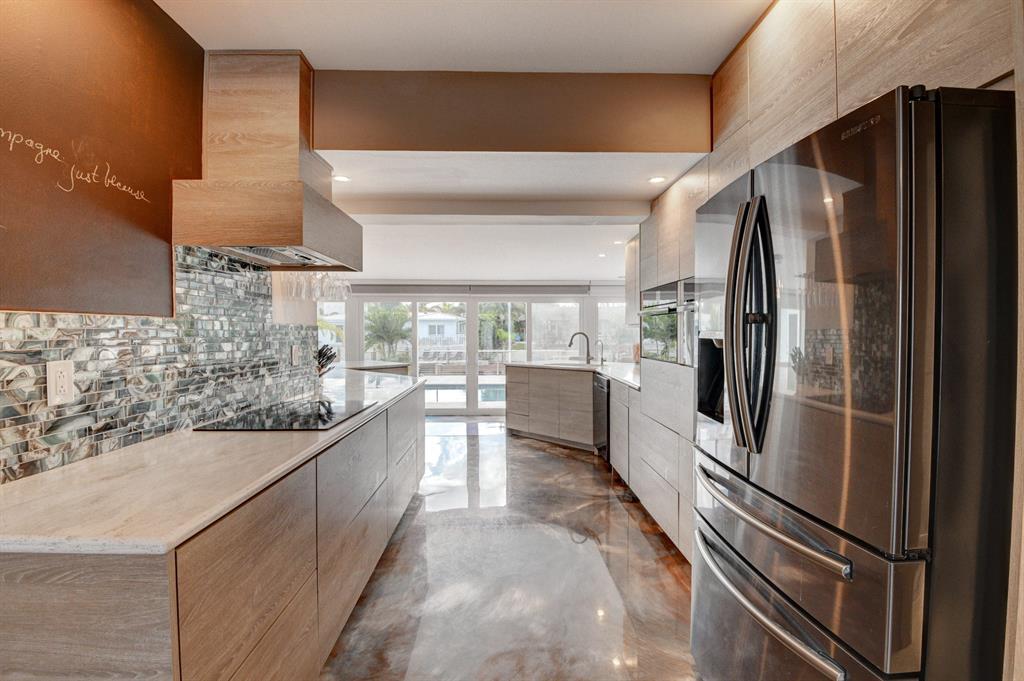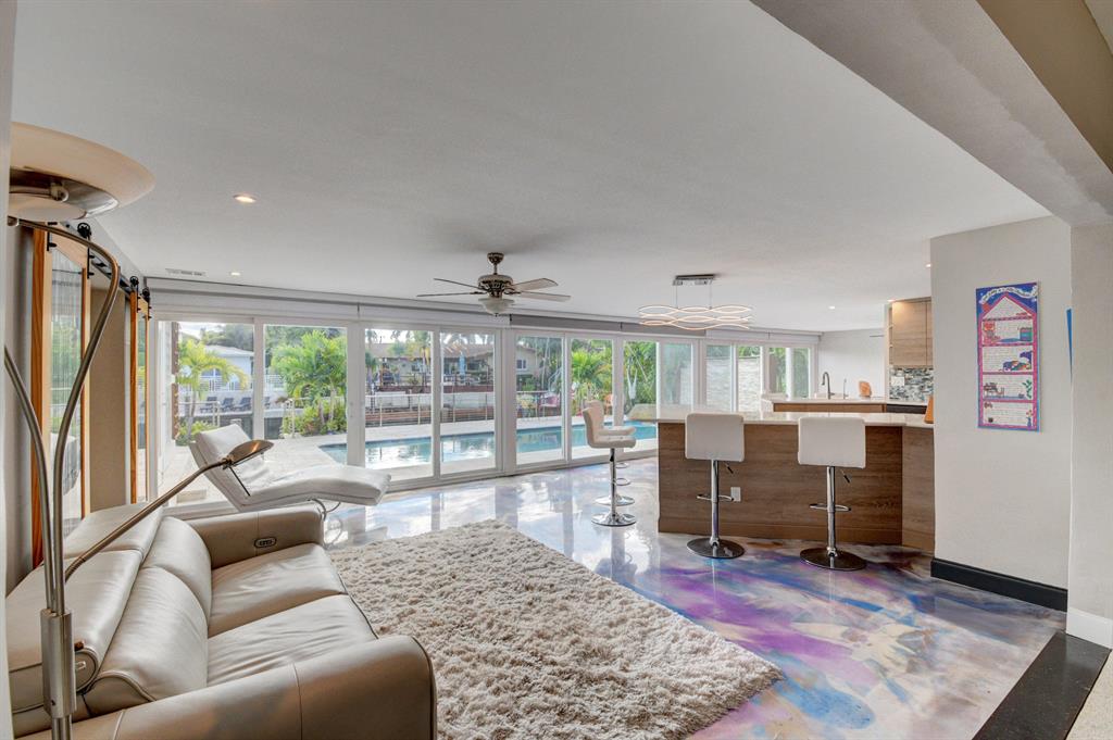 A unique California style blend of contemporary and natural design with beautiful waterfront views awaits you at this recently renovated private oasis. This is an entertainer's dream with an open floor plan that creates a synonymous indoor/outdoor living space with a tranquil waterwall, mature landscaping and stunning water and pool views. A custom chef's kitchen is a focal point with its open concept, endless counter and storage space along with high-end appliances. 14 raised herb beds with rain water catchers provide farm to table freshness. Bright and light, with a touch of color, the epoxy and terrazzo floors throughout add to the beauty of this home. Eco-friendly updates, includes solar cooling/heating, impact windows & doors and a rain water collection system that makes utility ..