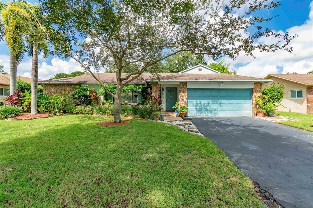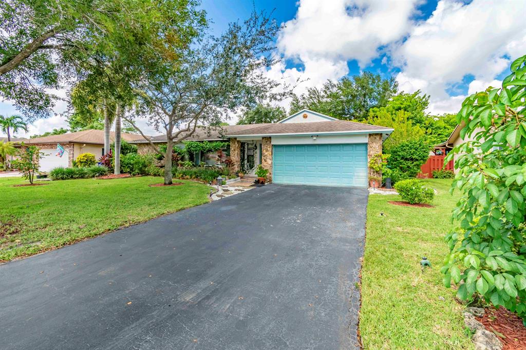 This coastal style and well-maintained home is located in a quiet little street in Coral Springs. It's a great place for families with children since its minutes away from schools, the aquatic center, tennis facility, ice skating ring, mini water park, Cypress park, shopping and major road ways.The fenced garden is a tropical paradise with assorted fruit trees, flowers, veggie garden and an herbal garden to provide you with your own fresh and organic fruits and veggies. The new oversized screen patio is still under warranty and covers the beautiful 5-year-old custom made floor deck. Small lights decorate the area and give a romantic atmosphere with plenty of space to entertain.The living area is decorated with a custom beach bar in weathered wood and custom-made wall fixtures. The til