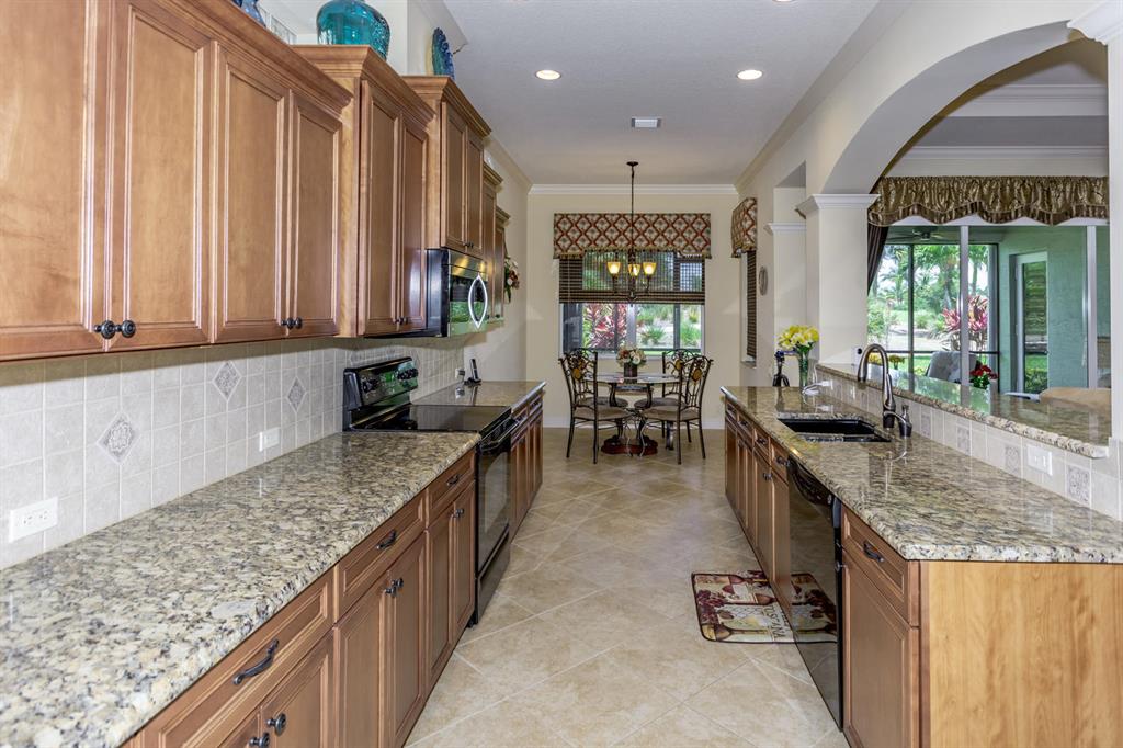 Immaculate 3BR, 2BA , 2CA, Golf Course Home in La Strada is Maxed out with every detail! 24 inch Ceramic Tile Floor on the Diagonal throughout living area, Bose Surround Sound System that extends to the Patio, Patio consists of Travertine Flooring with Select Grade Cypress that finishes the Ceiling , it is Gorgeous! Plantation shutters in the Master Bedroom and Guest Rooms. Social Membership Required $50,000