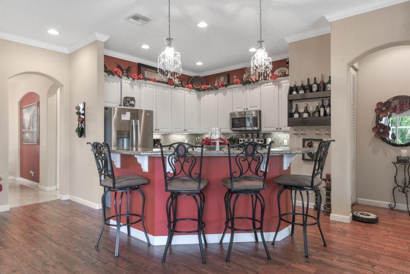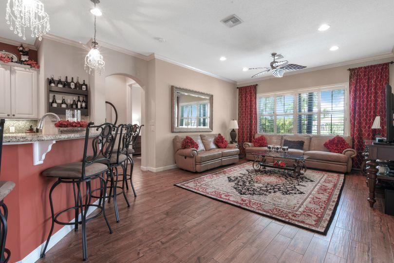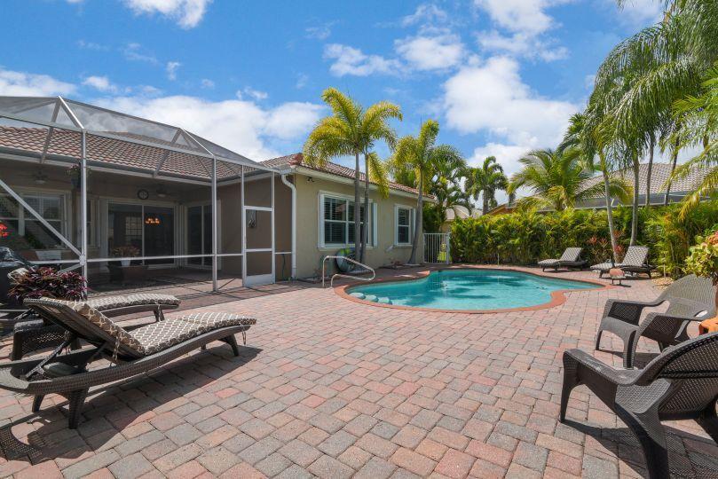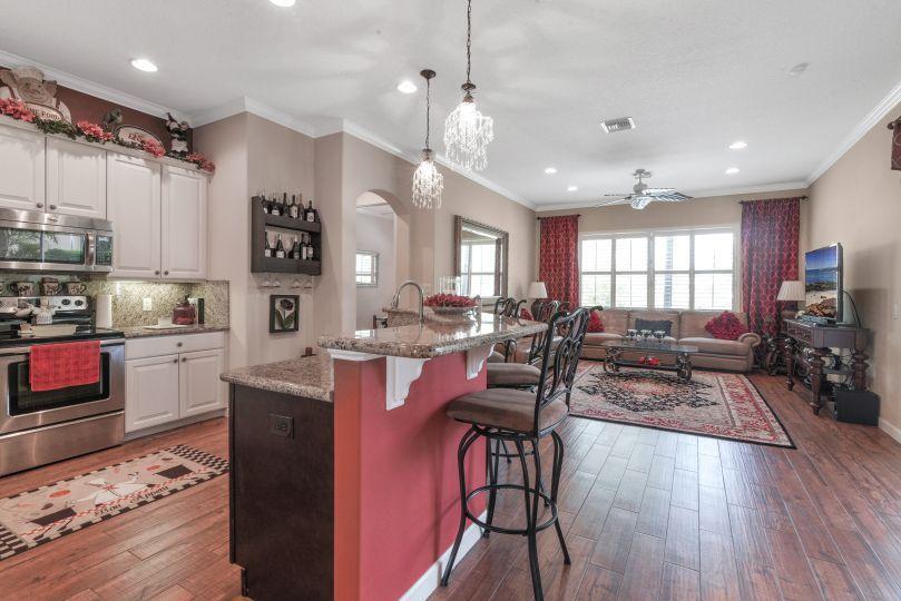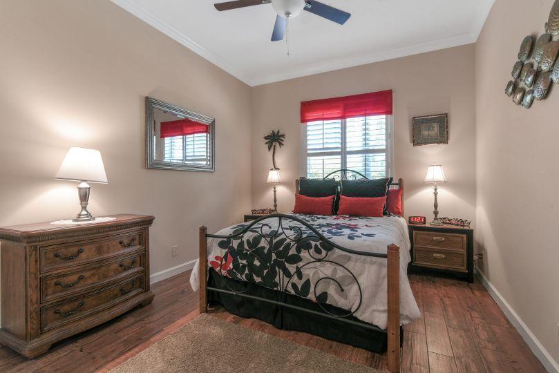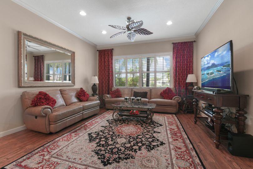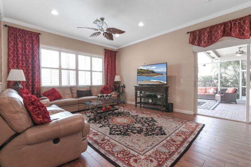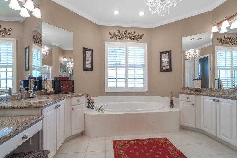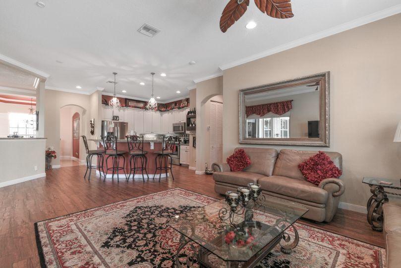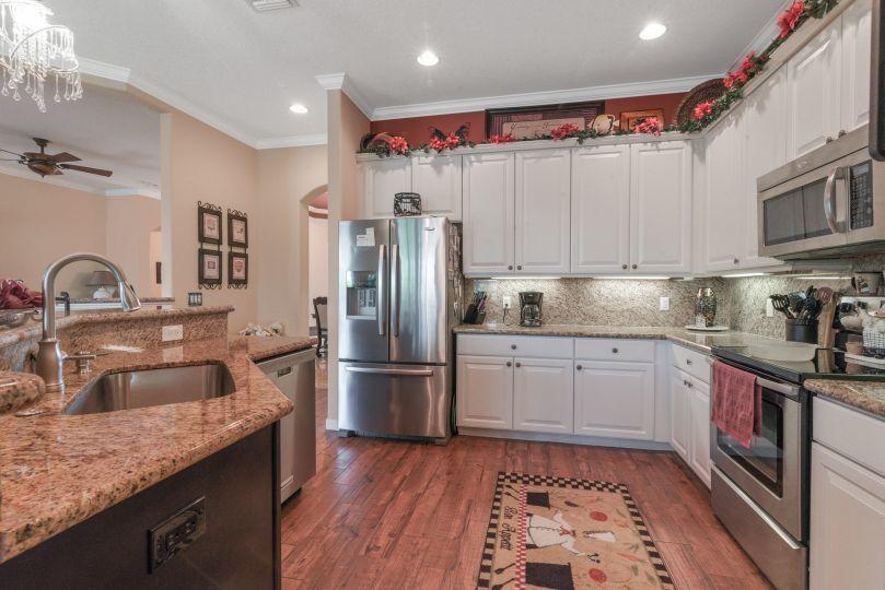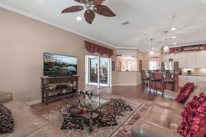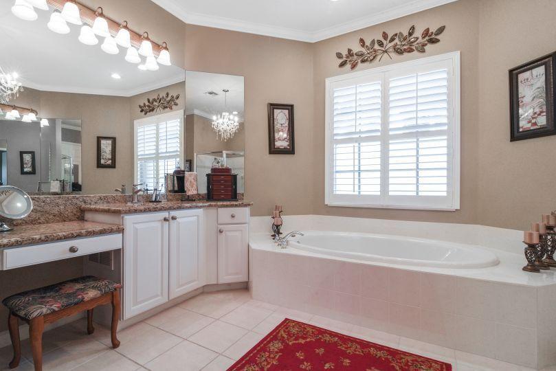 Gorgeous lakefront, pool home in resort style, active adult community (55+) The Estates of Baywinds! As you approach you will notice the lush landscaping & eye-catching curb appeal which set this home apart from the rest! Come inside and enjoy spacious living areas with gorgeous flooring, crown molding and plantation shutters throughout. The inviting kitchen boasts granite countertops and backsplash, newer stainless steel appliances and 42'' wood cabinetry with pullouts, a reverse osmosis water filtration system and lovely snack bar. All of the bedrooms are spacious as well and the master suite offers a walk-in closet with custom built-ins along with a luxurious master bathroom with granite, dual sinks, jacuzzi jetted tub and separate shower enclosure. Step outside onto a great covered