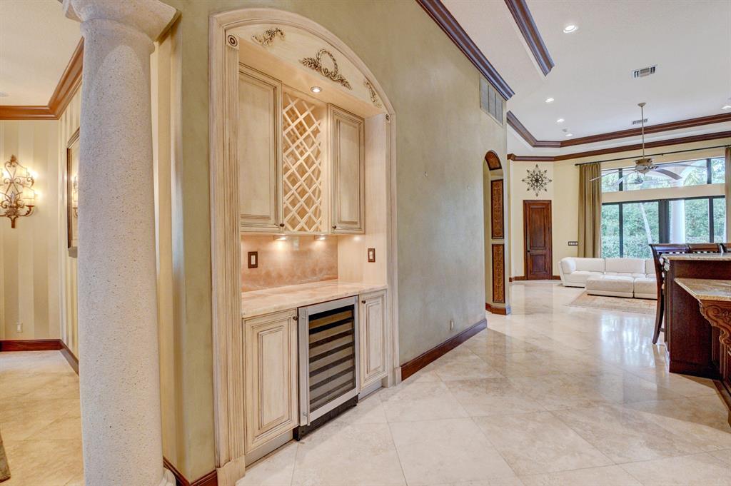 Artistry abounds in this unique, custom St. Moritz 5 bedroom, 6 bath beauty! High end features include Saturnia marble and hardwood flooring. The chef's gourmet kitchen has designer cabinets, granite countertops and top of the line stainless steel appliances. Loads of upgrades throughout the home include; office/media room, built in wet bar w/stunning quartzite countertop, tray ceilings, custom millwork and wall treatments, loft with built-ins, crown moldings, custom window treatments and plantation shutters, all new a/c's, generator and impact glass! The Master bedroom is on the ground floor and features enormous his and hers closets that are fully outfitted and a luxuriously spacious master bathroom. Lushly landscaped yard with private pool and spa.