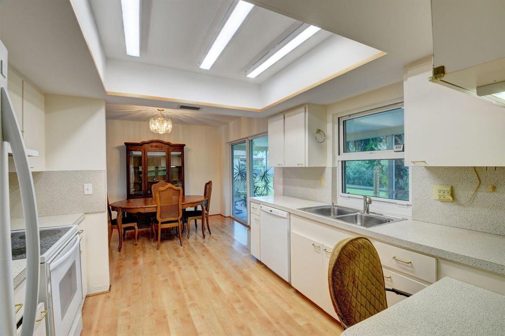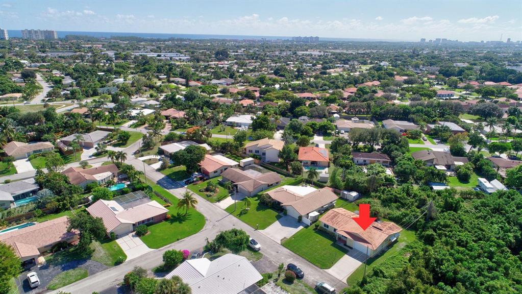 Open, bright and spacious 3 bedroom 2 bath home in quiet East Boca neighborhood. Large family room. Formal dining and living area. Quality laminate flooring in main living space. Updated bathrooms. Kitchen is open to the family room and dining area. Kitchen overlooks the covered patio which is accessible from family room and dining area. This home is move in ready with fresh paint throughout and new carpet. Large private lot with room for a pool. CBS construction; ceramic tile roof; hurricane impact windows. Reflect-Tec heat reflective roof coating and 20 year exterior wall coating. Solar power for hot water. No HOA. 'A' rated schools. Close to FAU and PBSC. Walk to places of worship. Easy access to shopping, beaches and highway.