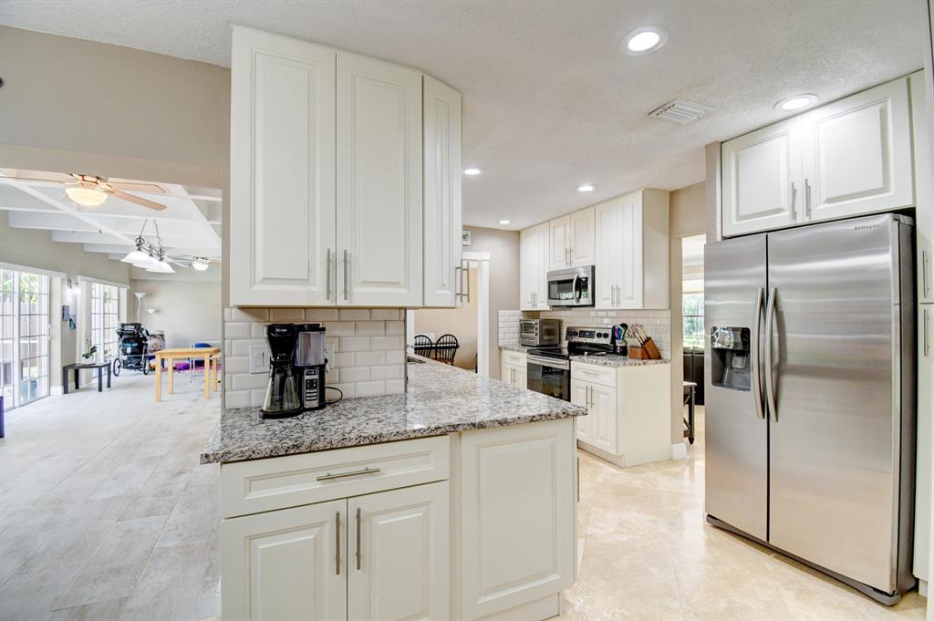 Beautifully remodeled 3/2 pool home located at 401 NW 11th Ave in Lake Floresta Park. NO HOA! This spacious home with a total of 2871 square feet has a Granite kitchen with new cabinets and stainless appliances that overlooks the family room, patio, and screened-in pool with new salt system. Features include a spacious Open Floor Plan, split bedrooms, new bathrooms, walk-in closet, wine cooler in the living room, Travertine flooring, crown molding, Cabana bathroom, and generator hook-up. This corner lot home in East Boca has a circular driveway, 2-car garage, and large backyard with storage shed. A-rated schools (Addison Mizner, Boca Middle & Boca High). Close to I-95, FAU, hospital, landmark Boca Raton Resort, Boca Town Center Mall, Mizner Park shopping & dining, art shows, boat parades
