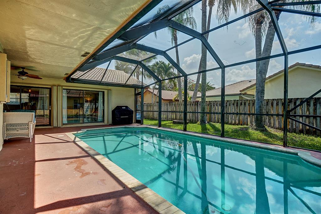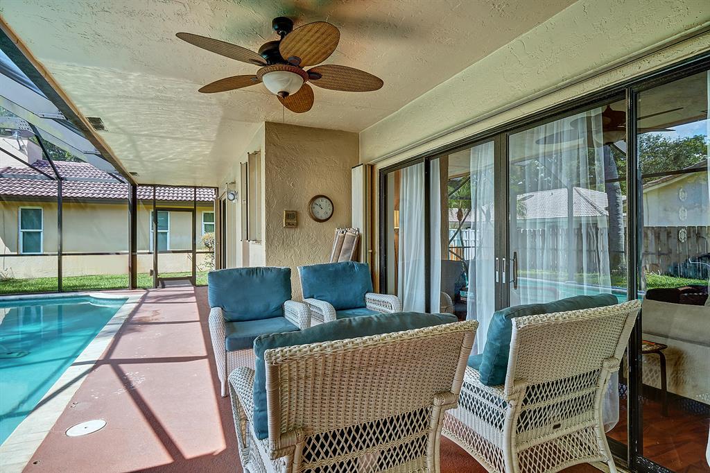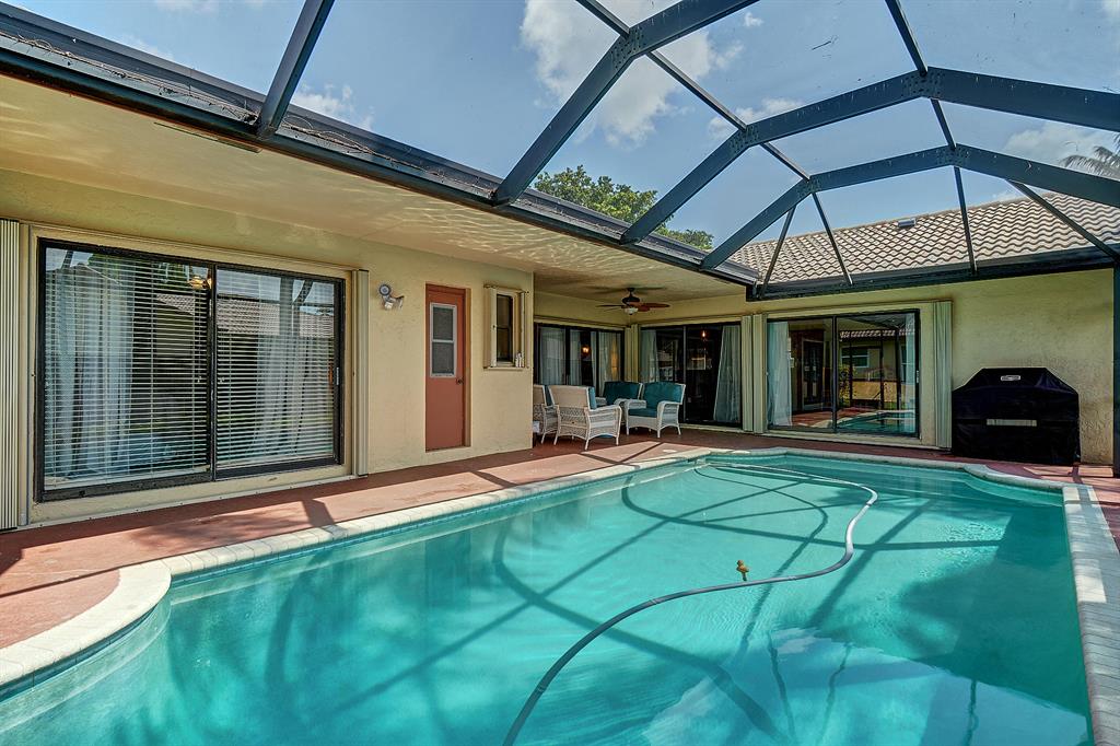 Do not miss this Immaculate Professionally Landscaped Open Light bright airy Great Room like Floor Plan with many upgrades and recent improvements. This Beautiful recently Painted Interior of this gorgeous property features Vaulted ceilings with crown molding/Solar Tubes/a large Kitchen area with a Huge granite center island PERFECT for entertaining/stainless appliances and a new wine fridge/AC less than 1 year old/Wood like Laminate floors in Living area, master bath shower has been updated and 2nd bath tub reglazed and caulked. The Screen enclosed solar Heated pool has a new pump and light as well as new Solar Panel & thermostat/ Hurricane rated garage door with new springs and bearings, ACCORDIAN SHUTTERS Decorative Paving stone driveway & walkway Roof & Back patio powerwashed Low HOA