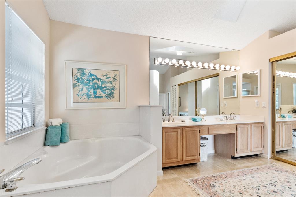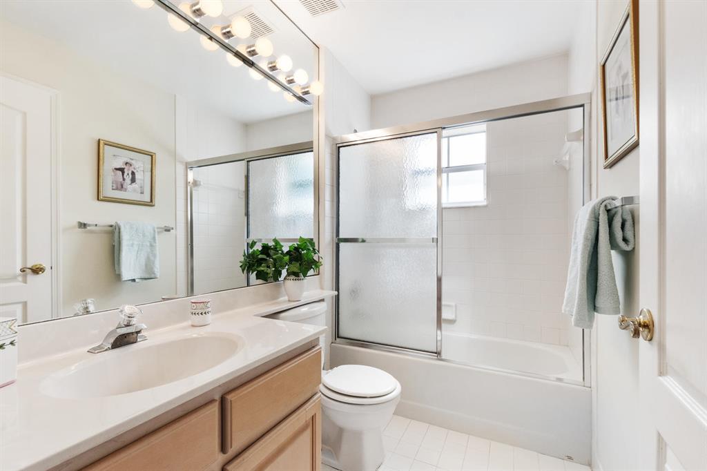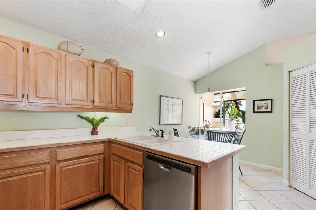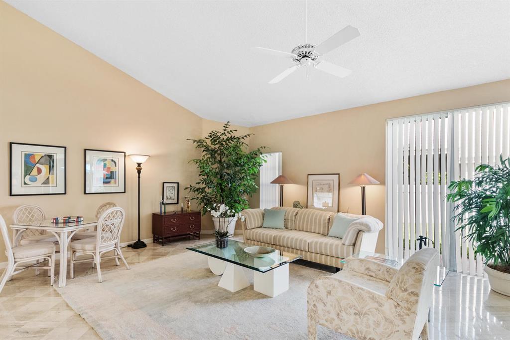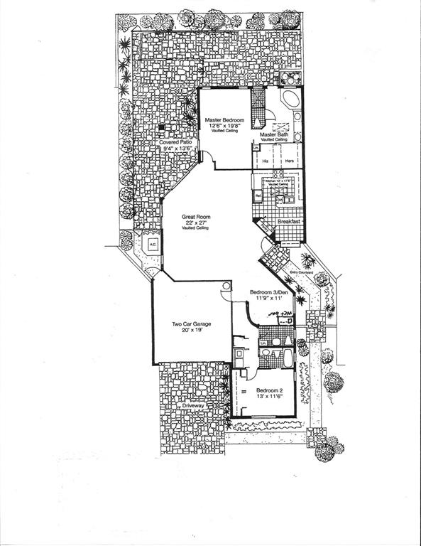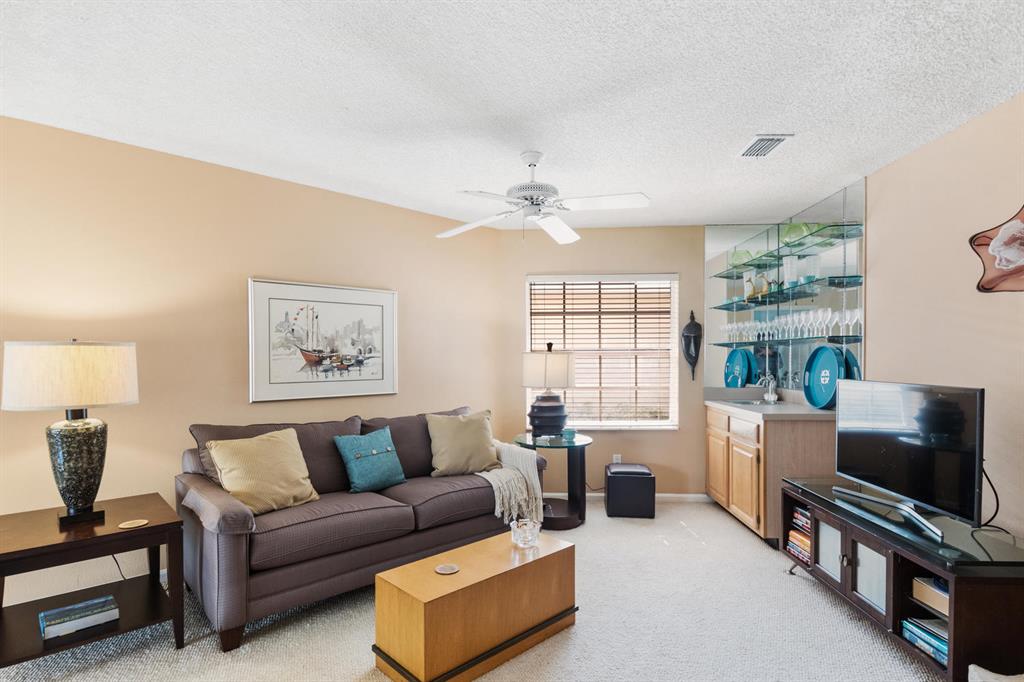 One of a kind location in Breakers West! Spacious 2BR + Open Den, 2.5 BA w/over 2,000 AC living area. Quiet location along the golf course plus it adjoins a landscaped easement area for additional privacy. Great Room w/vaulted ceilings, marble floors & sliding doors overlooking patio and yard. Kitchen with newer refrig, dishwasher & micro. Large Master Suite with sliding doors opening to patio. Master Bath has dual sinks, separate tub & sep shower, private toilet area and 12' x 8' walk-in closet. There is an Open Den with wet bar that could easily be enclosed as 3rd bedroom. Private Guest BR 2 has private bath and large closet. With an oversized open patio there is plenty of room for outdoor entertaining, grilling or gardening. Roof replaced 2012. No mandatory club membership req.