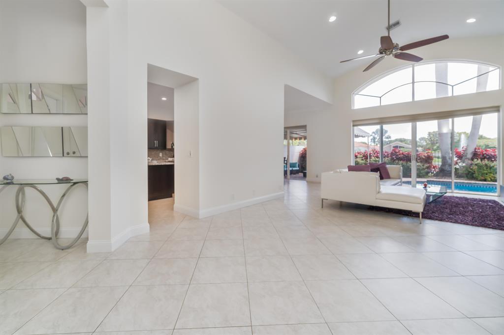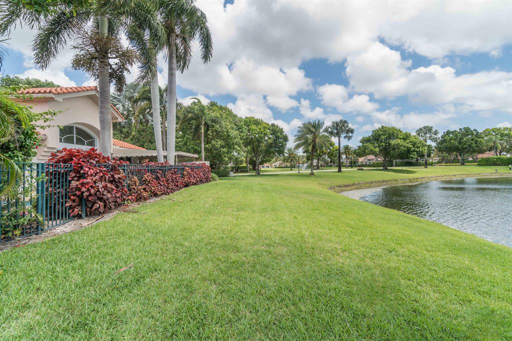This an incredible house 3/3**Two master bedrooms with their own master bathroom and huge closets and another bedroom with a site full bathroom** Peaceful lake view with a fountain in the nice large patio with a large pool** The roof was replaced in 2012 and no arch, columns in any where , Open and bright face east**Complete remodeled , Kitchen, bathrooms, pool deck , diamond brite pool and new floor , no carpets in this home, bedrooms with real wood flooring**High ceiling , laundry room with front lauded washer and dryer. And laundry top***dont miss this opportunity *** Seller moved out** walking distance to Boca Center mall and close access to I95 or Turnpike ** 15 min to the beach***