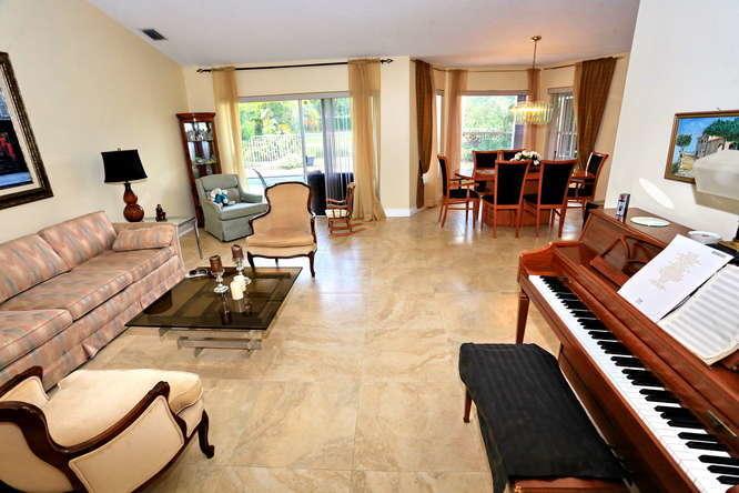 Look no further, this beautiful, SPACIOUS, METICULOUS home. features open floor plan an updated kitchen with water filtration system and soft close wood cabinetry, under cabinet lighting, and pantry pull outs. Upgraded glass-cook top range is a pleasure for any chef! Neutral color 24x24 Porcelain tile throughout downstairs. Open floor plan tours into formal and dining area. Volume ceilings through out. Master suite is located at opposite end of home. 2nd level features spacious Brs separated by a full Bath. Outdoors features a beautifully landscaped private pool, a Lanai with tranquil lake views. Low HOA, walk or bike to ''A Rated Schools.PBSO security. Home is perfect for family and entertaining. 9000 sq ft Lot. 2595 under AC! Close to 441 and Sunset Cove Park. Wonderful neighborhood.