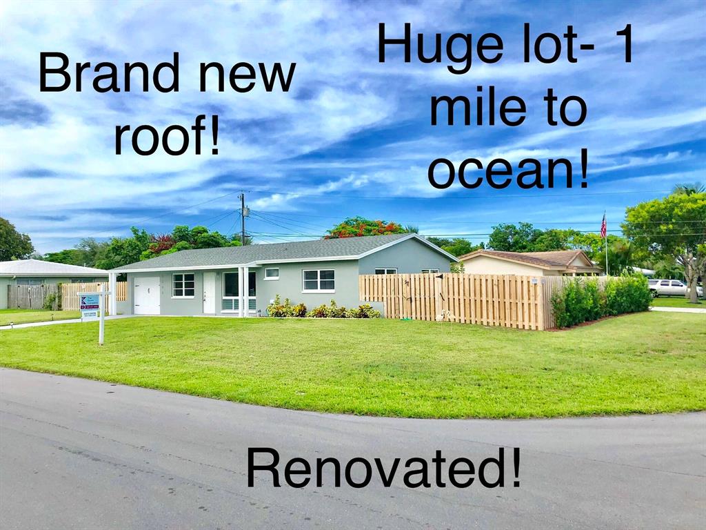 >>>BRAND NEW ROOF 6-3-19>>> Absolutely STUNNING CORNER LOT in East Boca just a mile from the BEACH! Fully renovated & loaded with high-end finishes. Beautiful 12x24 porcelain tile flooring throughout home w/ 5 1/4 baseboards. Spacious kitchen done to perfection w/ white ''shakers'' cabinetry, Quartz countertops, Glass backsplash, and brand new SAMSUNG stainless steel appliances. Gorgeous bathrooms complete with polished porcelain tiling & modern finishes. Brand new AC handler & condenser. Brand new 200 AMP Electrical Panel and Meter, outlets, recessed lighting & more! New wtr heater and upgraded plumbing. Fully upgraded sprinkler system with new heads & ''Rain-Bird'' digital controller. New 6ft high fencing for privacy. Listing info subject to errors & omissions. Measurements approximated.