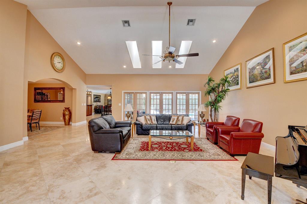 Beautiful one story, 4/3 1/2 home in Woodfield Hunt Club, with open floor plan, high ceilings and lots of windows. Home has 3 car garage and is situated on a corner cul-de-sac lot. Updated and tastefully decorated throughout. Split bedroom plan-master bedroom has his and hers vanities. Travertine and wood floors in bedrooms. Updated kitchen with double ovens, pantry, island, desk, and lots of cabinets. Great inviting patio with lake view for relaxing around the pool. Woodfield Hunt Club has clubhouse, fitness center, tennis courts, tennis program and playground. Also provides 24 hour security patrols and manned guard house.