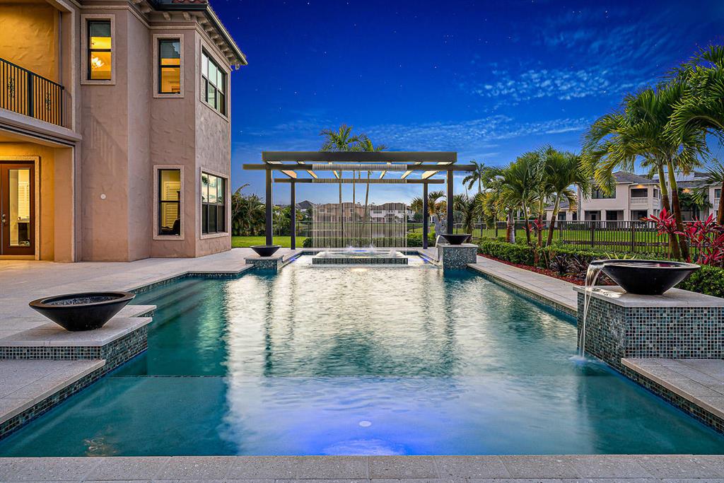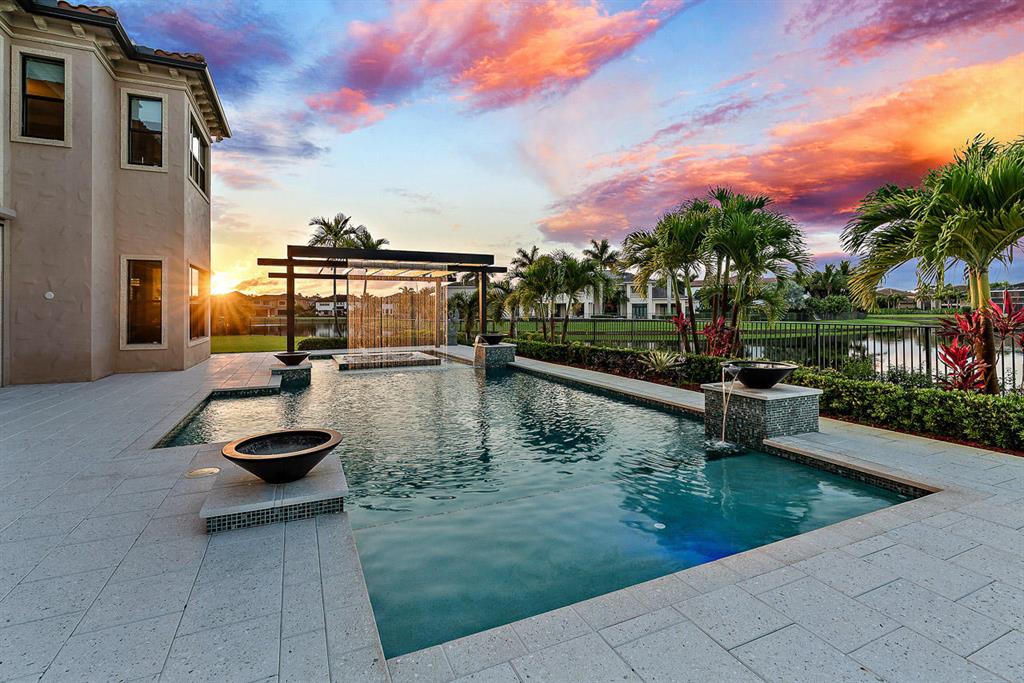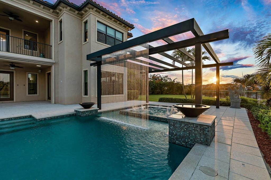Stunning contemporary estate home in the highly sought after community of The Oaks. Home sits on the largest lakefront lot in the community, nestled on a quiet cul-de-sac. Once entering the home, you'll see the double glass staircases, marble flooring and your impressive pool area. The gourmet kitchen has all viking gas appliances, large french door Sub-Zero refrigerator, large hidden pantry and a butlers pantry. All of the lighting throughout the home was recently changed. The backyard oasis features a pergola with water feature over the resort style pool with in pool spa and overlooks the long lake. Ample entertaining space and a large patio and balcony with automatic screens. This is a home that you won't want to miss!