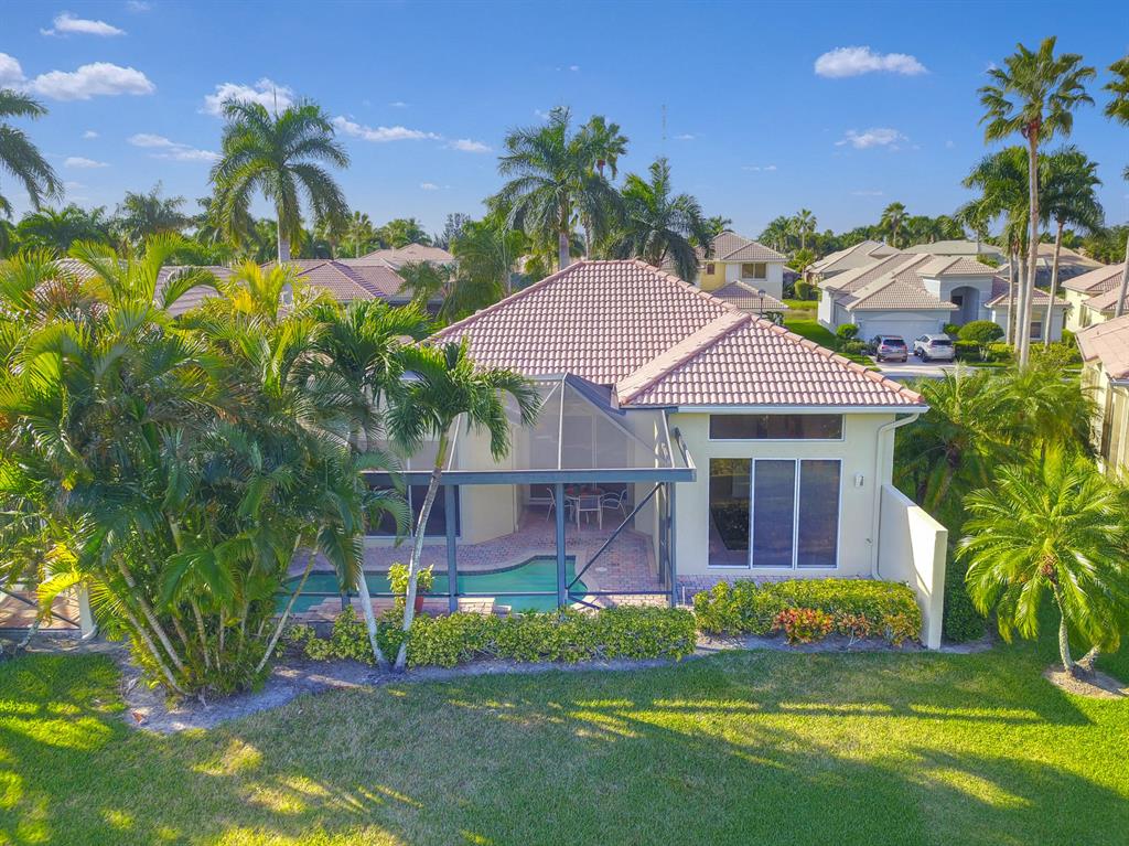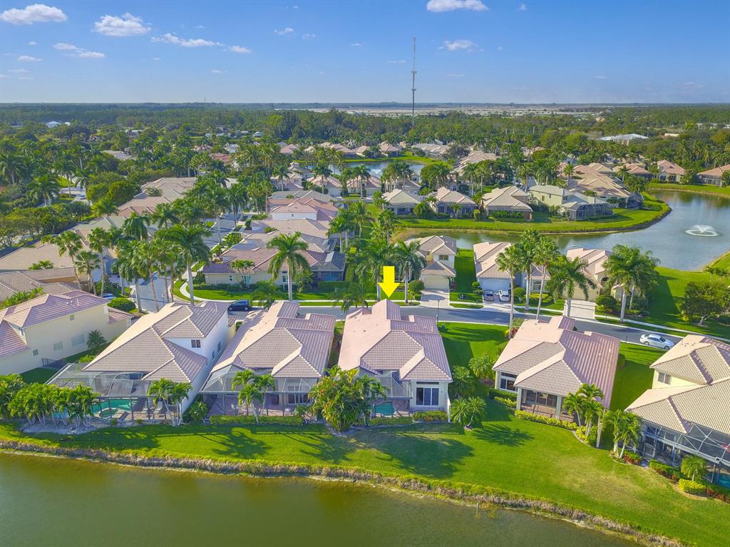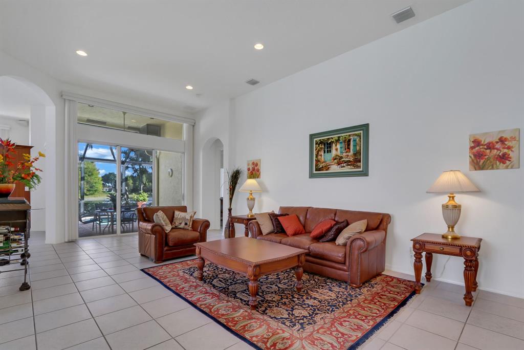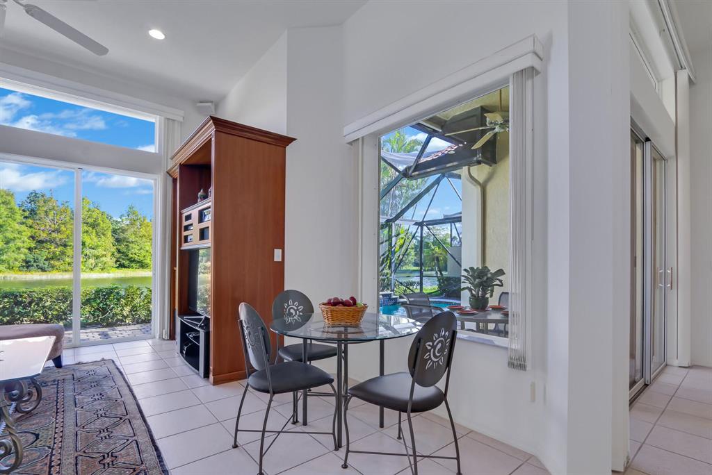 Incredibly priced one owner home with expansive lake view and numerous extras. Popular Hamilton model with 2 BR/2 1/2 BA+ Convertible den/ bedroom. Perfect SE exp with screened pool and waterfall. New kitchen with 42'' cabinets in cinnamon tones +granite counters, custom built- in in FR in Cherry wood . All tile floors-no carpets. Decorative tile entry. Jacuzzi tub in master. Pool has an overflow valve -a nice extra!Drainage system in back to avoid flooding.Sink in Laundry-gas hook up outside-Master overlooks pool and lake .Walking distance to community pool. This home is light and bright all day due to the marvelous exposure.Exterior was painted last year.This one owner home has been maintained with care and pride. In addition, it is walking or biking distance to the club . A must see!