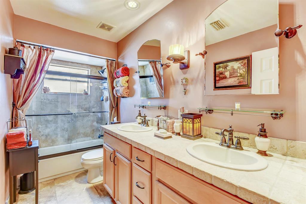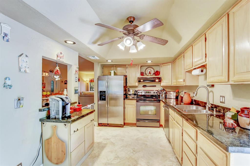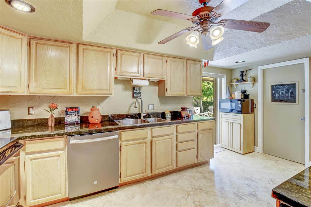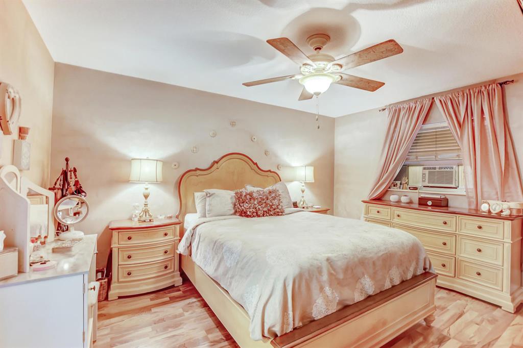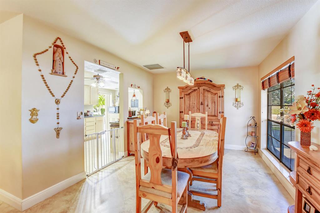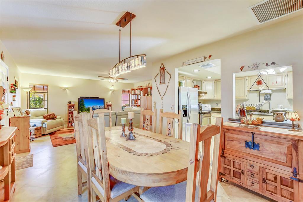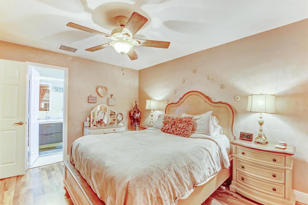 Updated true 3 bedroom, 2 bath, Plus 1 car garage that is currently a play room/4th bedroom in Sandalfoot Cove on a corner lot! Everything has been well thought out and there is no wasted space here! Open floor plan w/porcelain tile throughout living areas on a diagonal. Sunny kitchen ''Butterfly Green'' granite countertops which look black and sparkle green highlights when the light hits them, stained Oak cabinets, tilt out drawers under the sink, & stainless appliances. A great place to cook! Bar/pass-through to dining room was redone in matching kitchen granite. Laminate wood flooring in all bedrooms. Master bedroom features ''Martha Stewart Living'' light strokes effect Gulch colored paint and walk-in closet.