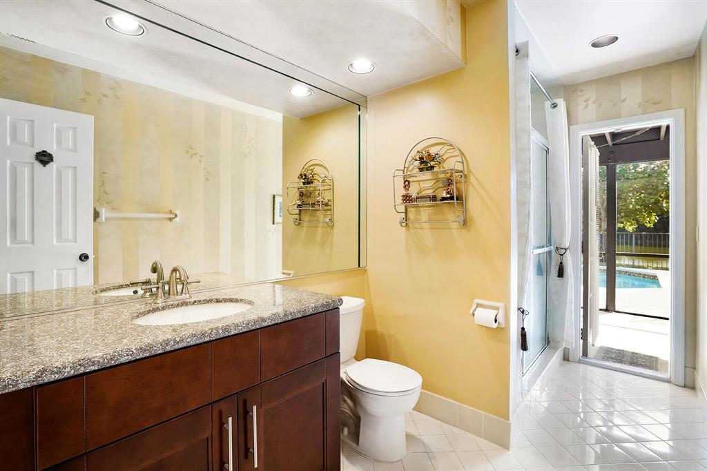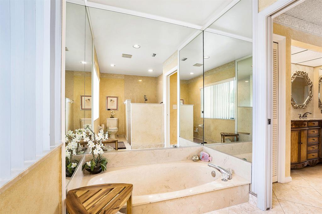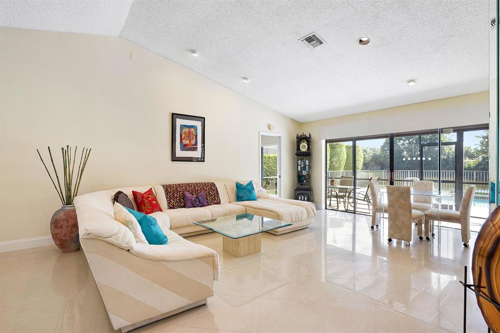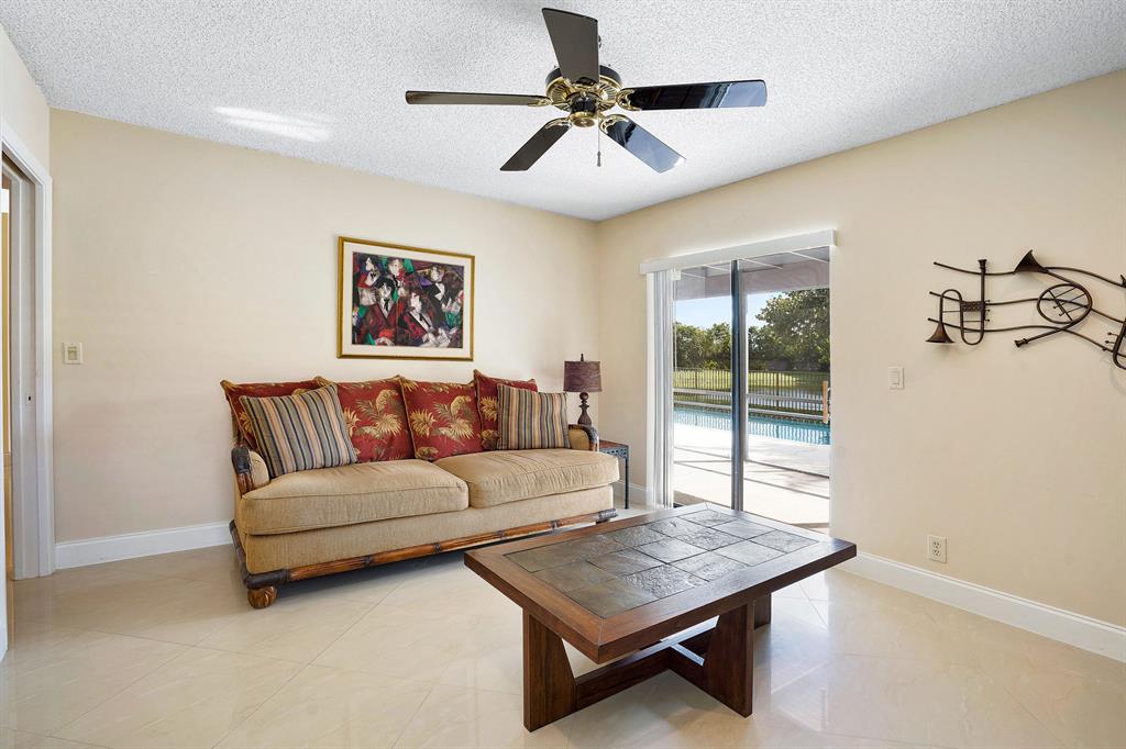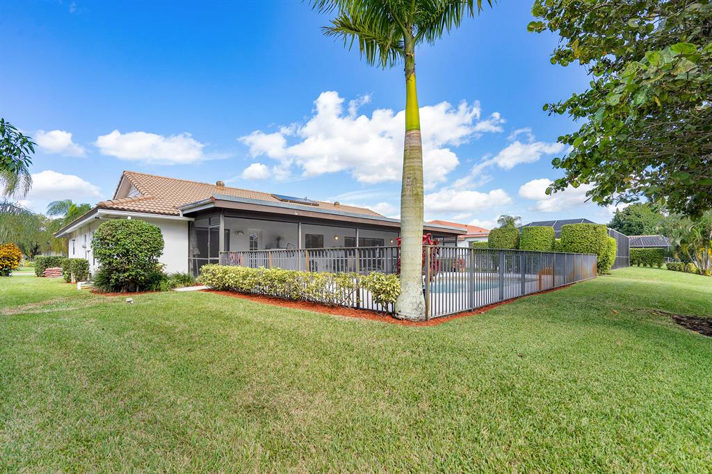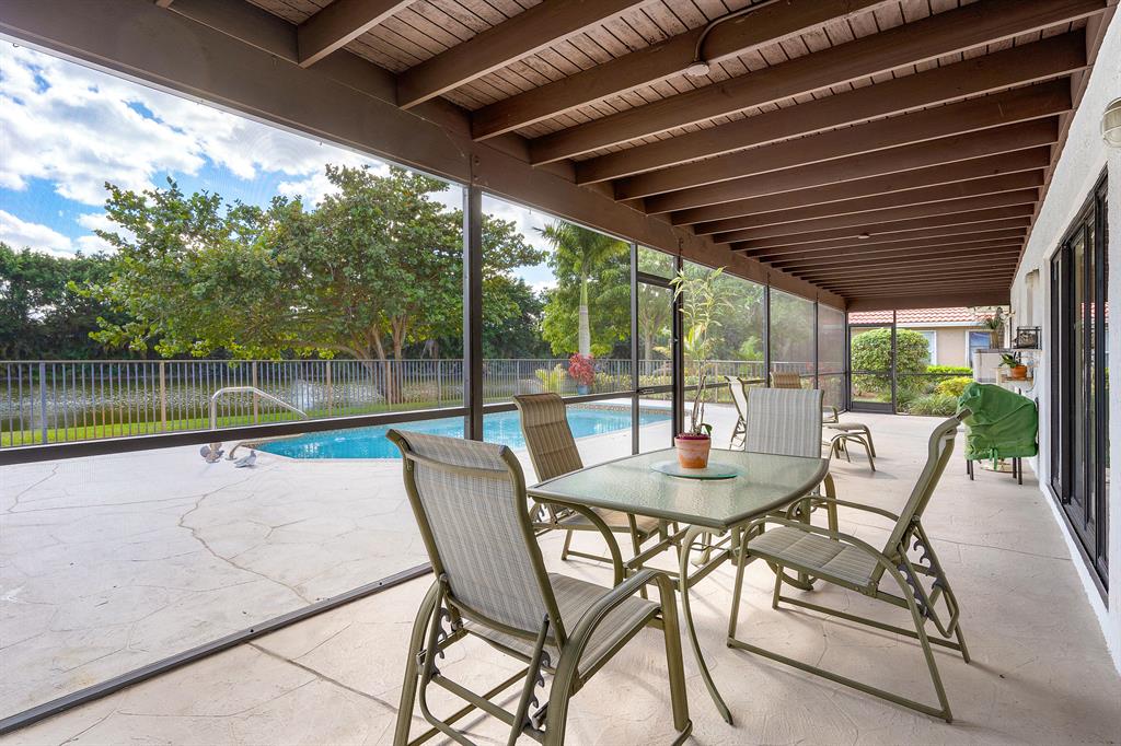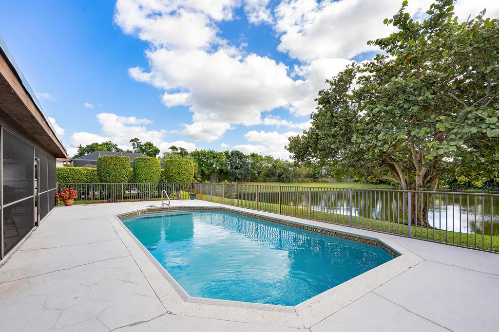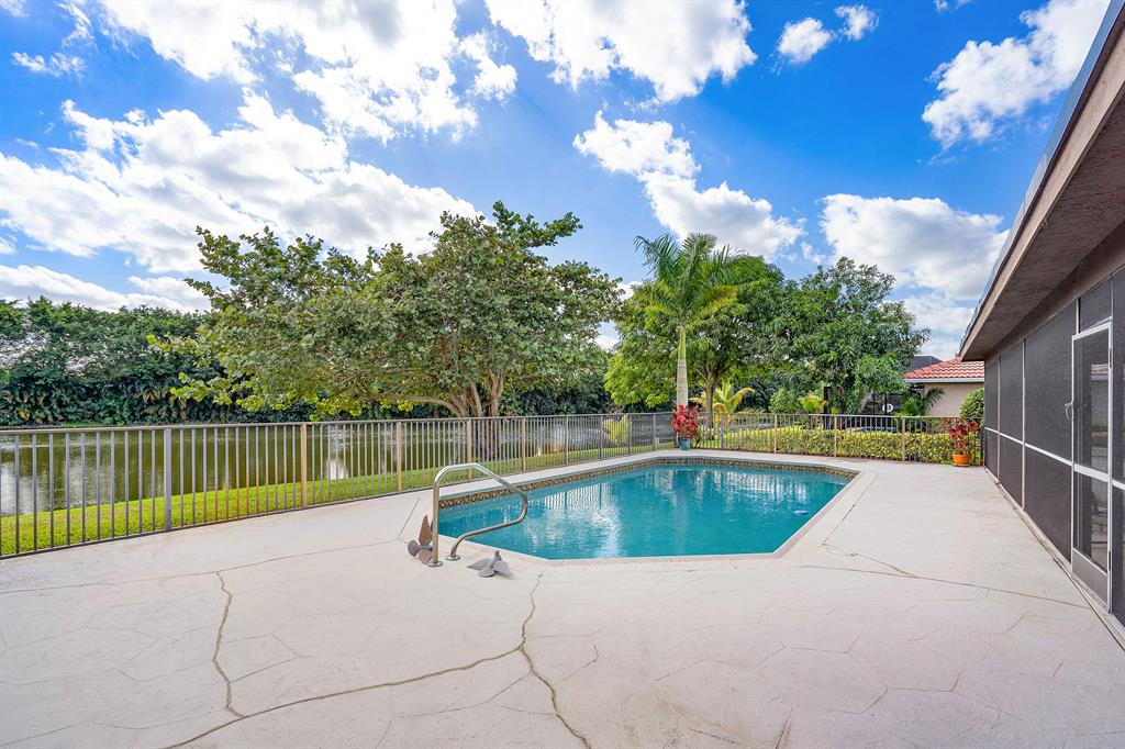 WOW! This 3bd/2ba single family home is ready for its new and proud owner. Located in the highly sought after Boca Greens (non-mandatory membership) golf & country club community you feel right home in this MINT condition property. Over 3,000 total square feet make up this home on the most private lot in the community! Nothing but lake views and tall trees encompass your backyard experience with an ultra-sized screened in patio and large private pool. Beautiful porcelain tile throughout the main living area -- updated kitchen w/ granite countertops and SS Appliances -- Large master suite overlooking the lake, with his & her closets, lovely vanity with dual sinks, walk-in shower and separate spa tub . . All the bedrooms are a great size & the home offers a convenient indoor laundry