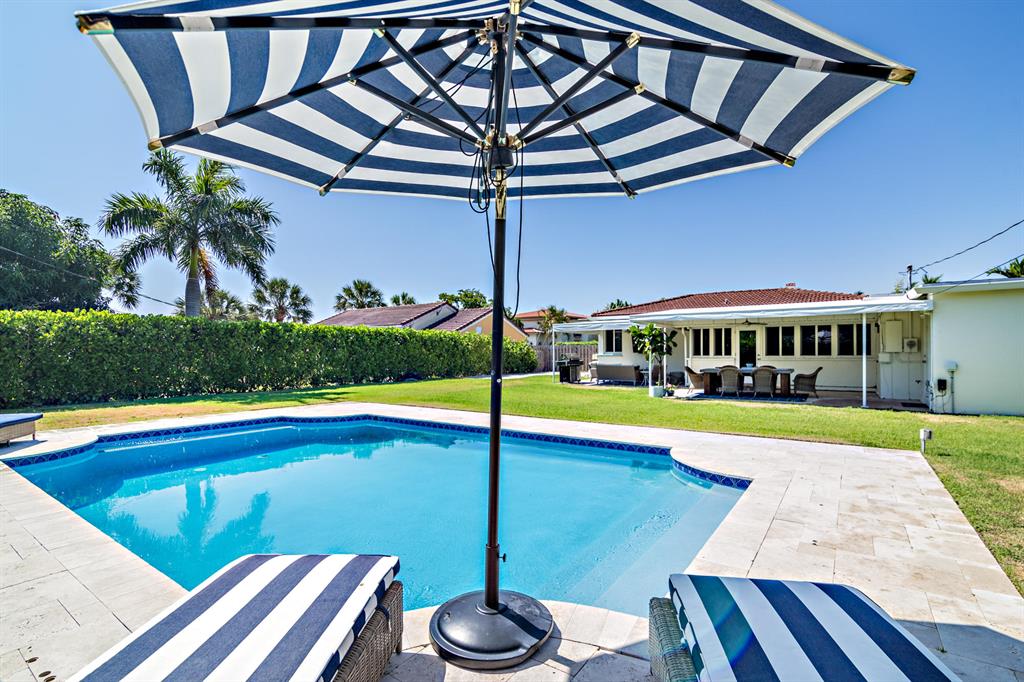This gem of a home is situated on a very deep lot for the neighborhood (75' x 140') and on one of the most desired streets south of Southern Blvd and East of Olive Ave. Completely gutted to the studs in 2017 this 3 bedroom, 2 bath home now features central AC, full impact glass windows, hardwood floors, brand new kitchen and bathrooms, new irrigation system and newly installed 2017 swimming pool. Over the last year, the home owner has added a large covered backyard patio which protects from the sun/heat and is also perfect for entertaining or simply relaxing poolside in your own private spa-like oasis. Close to area beaches, Flagler Drive bike path, shopping and I-95.