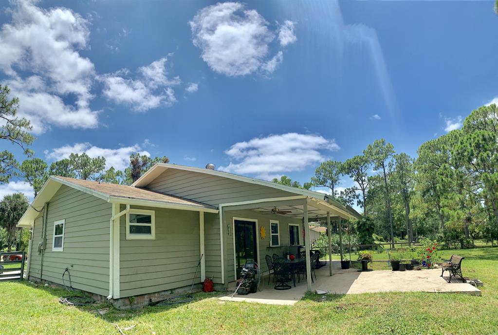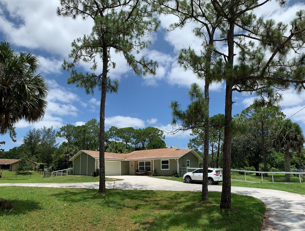 This Updated 3 bedroom 2 full bath ranch home sits on an incredible 1.25 acre parcel with mature trees, barn and a chicken coup. The long circular driveway leads up to the entrance of the home which offers open floor plan, split bedroom design, living room with vaulted ceilings and large windows, separate dining area and a large eat-in kitchen all connected to spectacular panoramic views. Outside, the large covered patio overlooks the beautiful totally fenced large backyard providing generous space for entertaining and family activities.Other amenities include: granite kitchen counter tops, updated tile bathrooms,impact windows 2019, AC 2017, reverse osmosis drinking water system 2017, walk in closet in the master bedroom suite, hot water tank 2016, well pump 2019, house water system 2016
