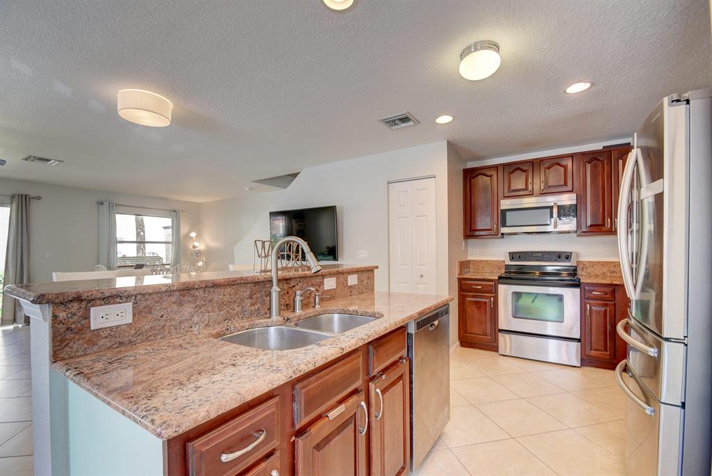 Welcome home to this rarely available light and bright 3 bedroom/2.5 bathroom townhouse in gated Royal Woods. Entertain and cook in an updated kitchen featuring granite countertops, stainless steel appliances and wood cabinets. Enjoy the open floor plan and large living space. The master bedroom is upstairs with a walk-in closet! One car garage and space for 2nd car in the driveway. Also plenty of guest parking. Hurricane panels for all windows. This well-kept home was built by Centex in 2006. The community features a resort like pool and large playground for plenty of fun in the sun! Gated for added security. Close to shops & restaurants. Stroll to Veterans Park. Great schools! Perfect place to make home!