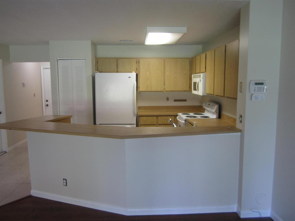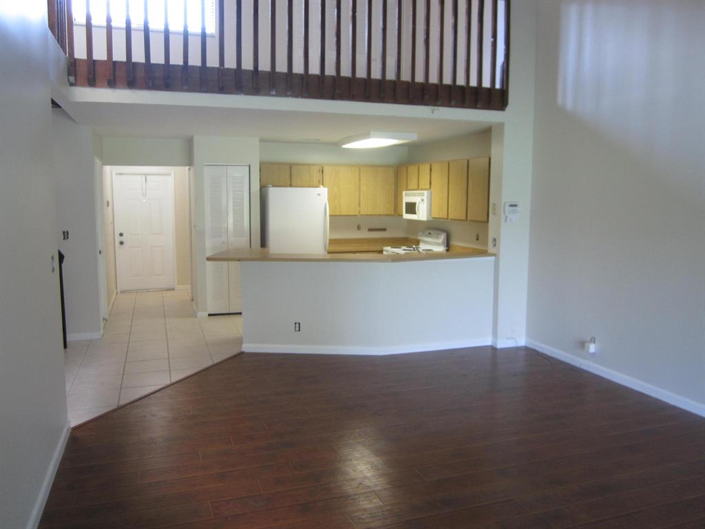 Freshly painted with knockdown vaulted ceilings, tiled entry and kitchen, wood floors in living area. Upgraded washer and Dryer. Screened covered patio. Pet friendly, Community pool, tennis basketball and jogging path.