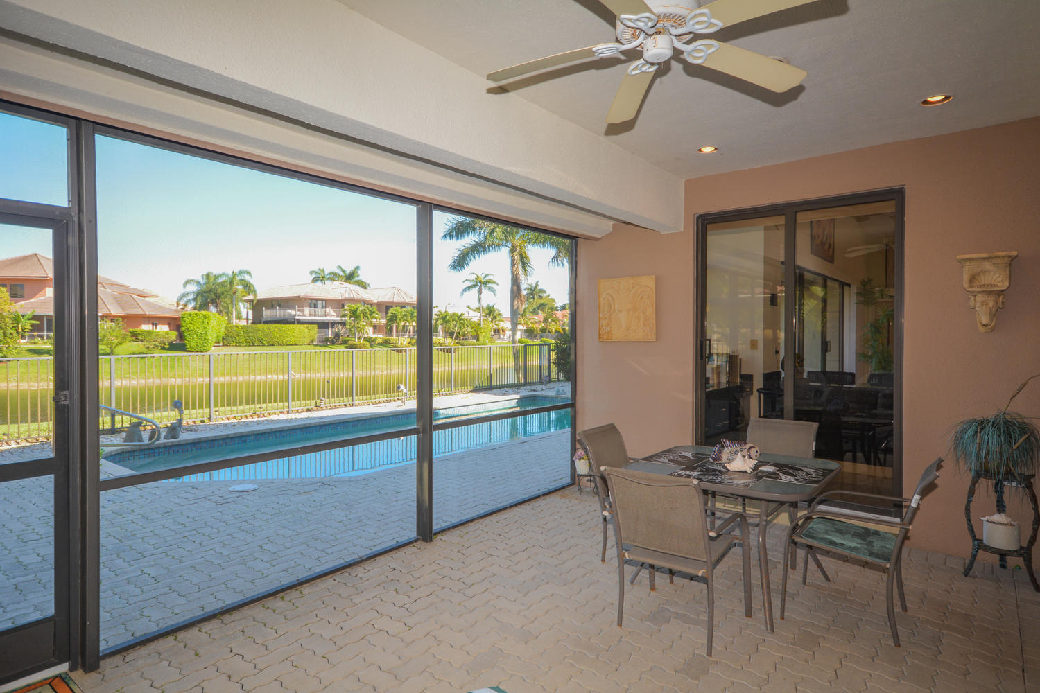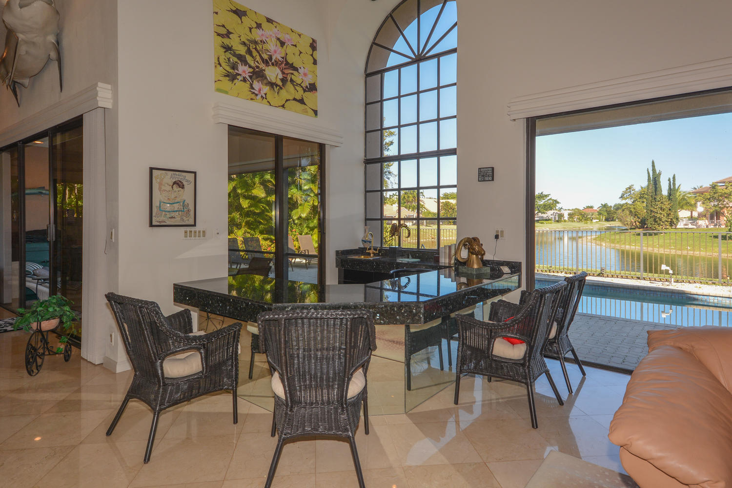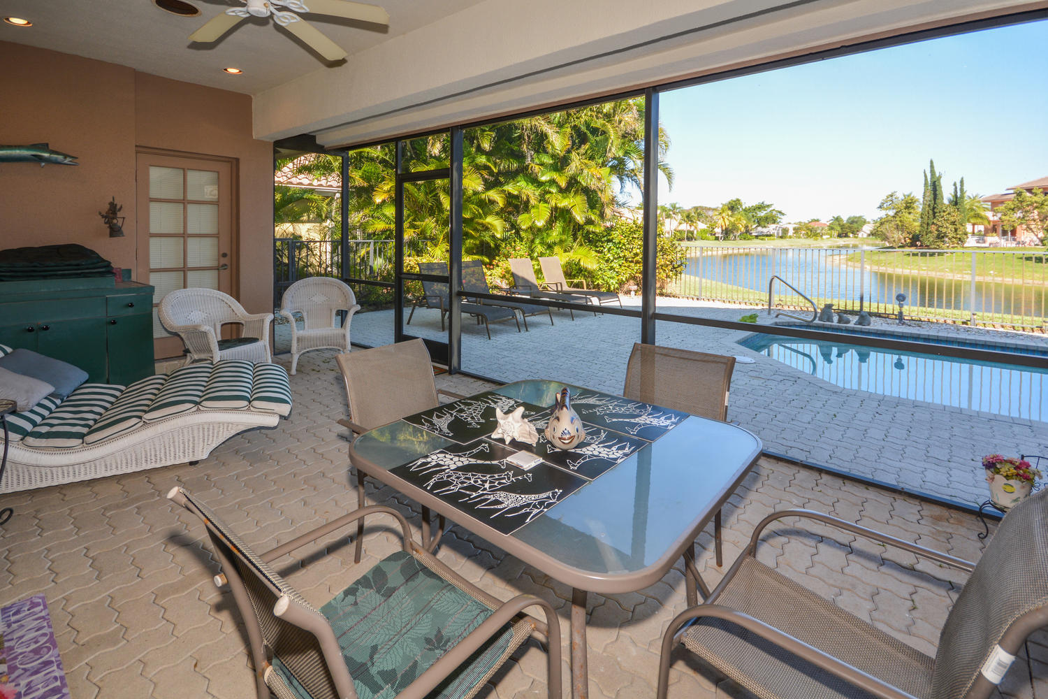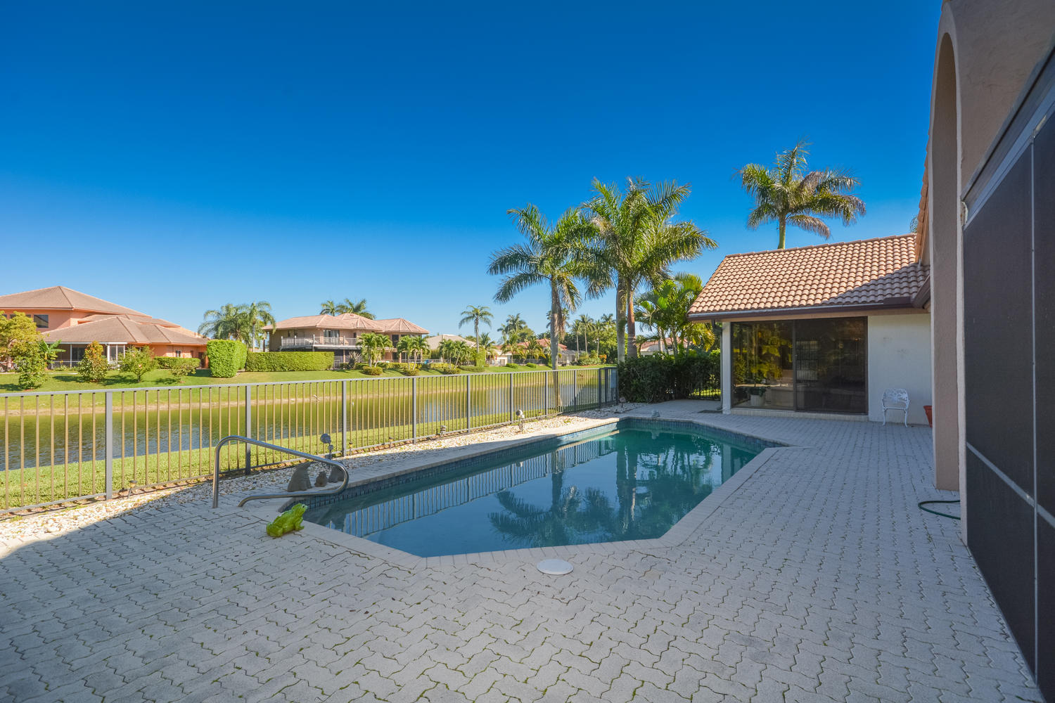 Enchanting 3 Bedroom Waterfront Home With Incredible Lake Views! Situated on a lake with east exposure, this lovely estate home offers an open floor plan and high ceilings. Large master suite with sitting area and his and her bathrooms. Marble floors featured throughout the main living area. Immaculately maintained by original owner. Outdoor oasis perfect for Florida living with screened in patio and large fenced pool. Boca Pointe membership available but NOT mandatory.
