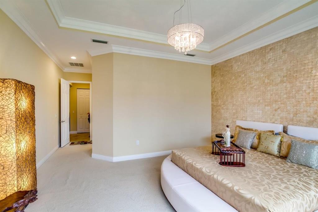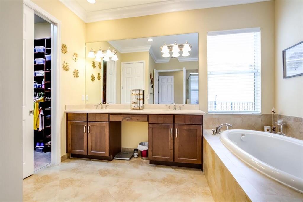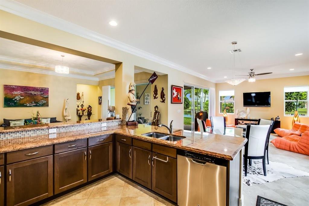 Feel the warmth and elegance of thisbeautiful homme when you first walk into the gorgeous custom mahogany front doors imported from South America! This is a single story home that features 5 generous size bedrooms and 4 full bathrooms. You are going to love how open the house feels and the kitchen is open to both the living room and the family room. The kitchen has all upgraded stainless steel appliances, all wood cabinets and tons of granite counterspace! There is even a butlers pantry with the same cabinets and granite in the beautiful dining room! There is crown molding thru out the house and the windows are all covered with Allen Roth silhouette blinds. The master features an accent wall made of processed ''capiz'' shells on the wall that is really very special.