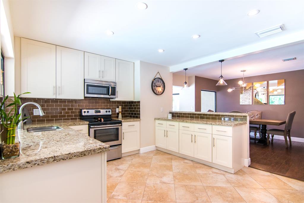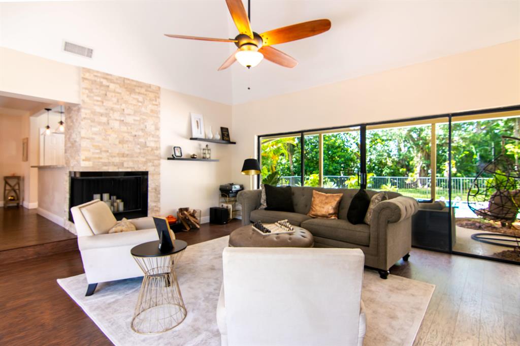 Completely Renovated one story Contemporary home on a 1/2 acre of lusciously landscaped land. Private Cul-de-sac with Marble & Stone fireplace, volume ceiling living room, wood flooring, spa-like master bathroom with free standing bathtub. Custom Contemporary Designer kitchen with Granite countertops and Custom Glass backsplash, stainless steel appliances overlooking the pool. Two newer concrete slabs on the side of the home to park a boat, jet skis or an RV.