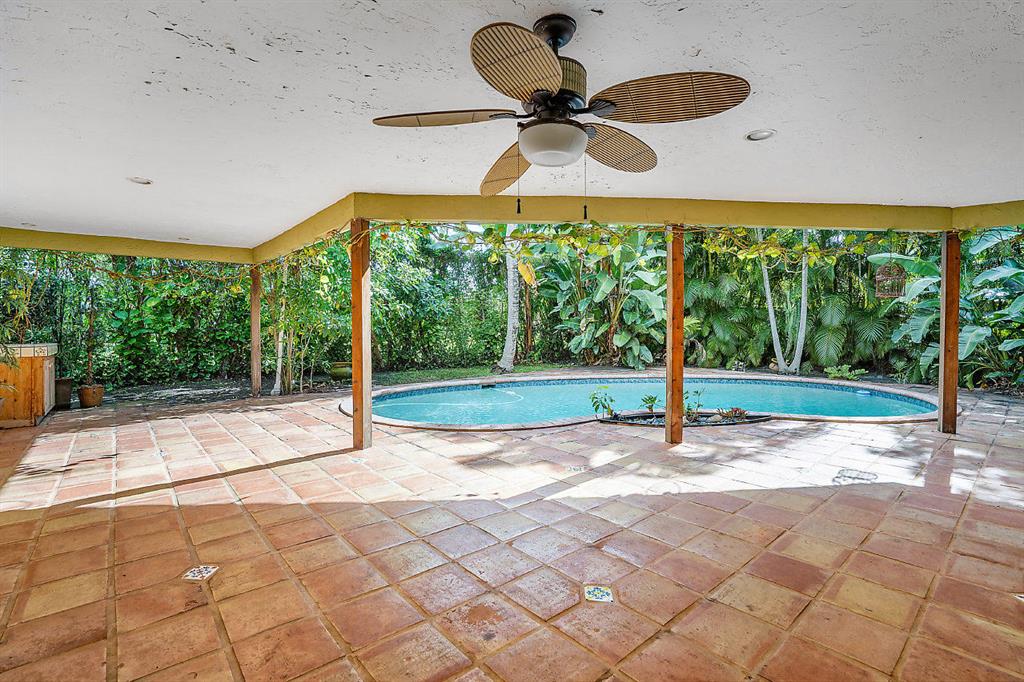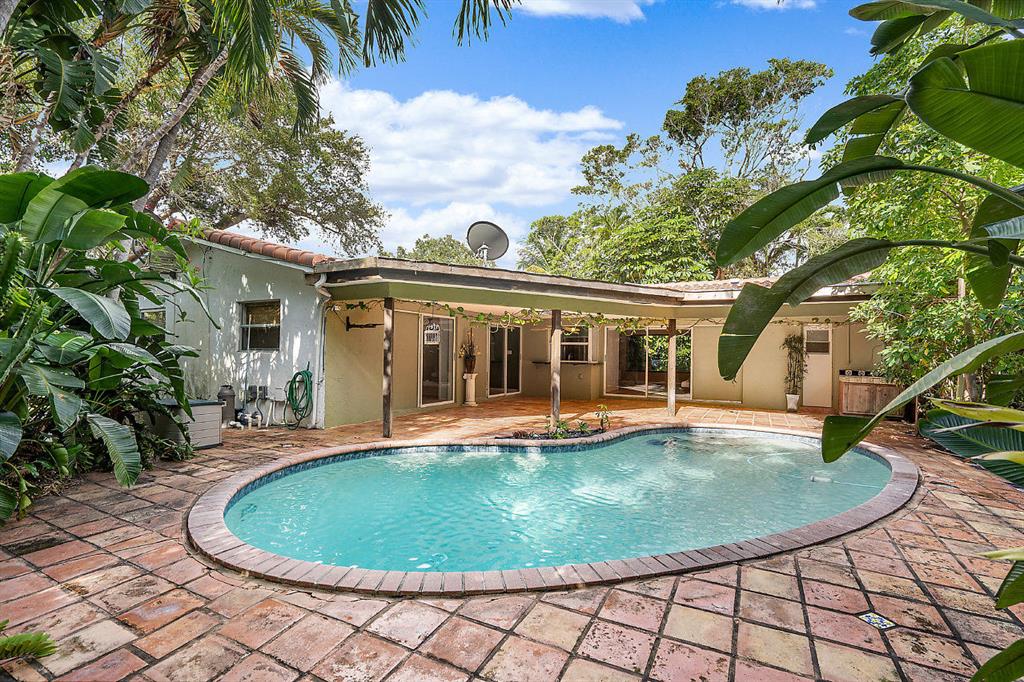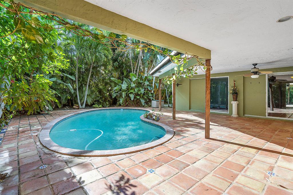 This hidden gem is surrounded by lush tropical landscaping. Very private and EAST Boca! The first street West of the intracoastal on the East side of NE 5th Ave. Walk to the beach, Mizner Park, shopping and restaurants. This old Florida charmer is nestled between muli-million dollar properties! 4 bedrooms, 2 baths, 2 car garage and a sparkling free form pool. Roof is 2 years old, Mexican tile throughout and upgraded unique custom kitchen. Live the Florida dream in the sought after East Boca location!!