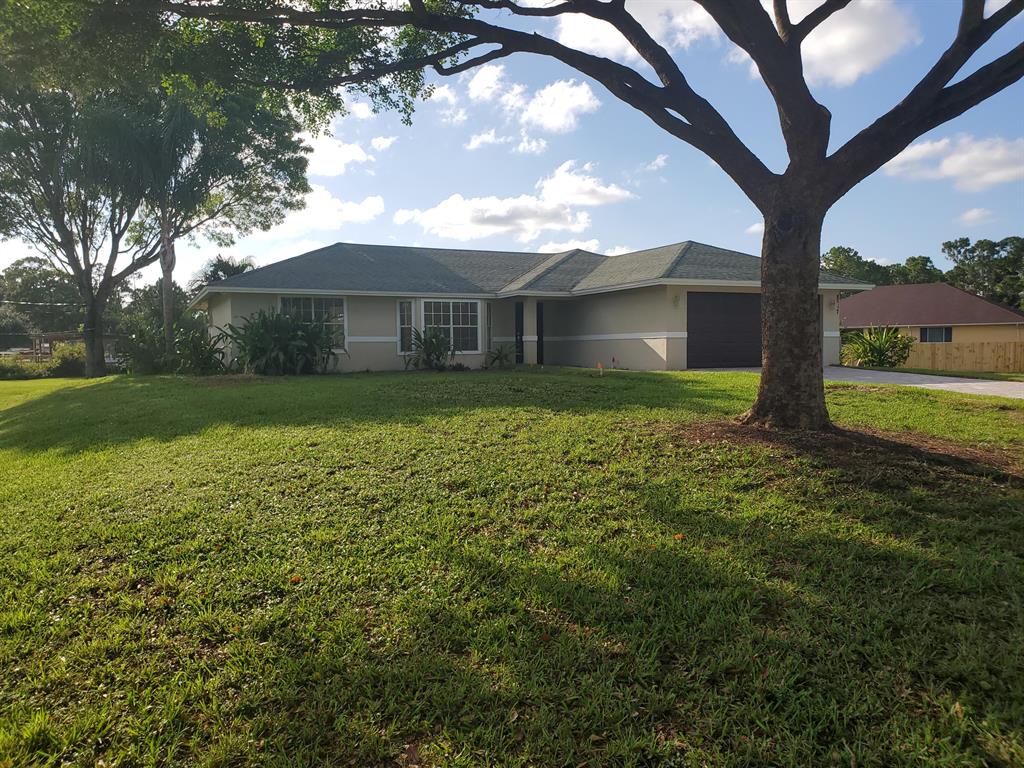 Location! Location! Location! Most desirable area in the Acreage on a huge 1.37 acre paved road corner lot. Fully renovated in 2019 with all new appliances, flooring, ceilings, and bathrooms with desirable open floor plan design. This is a must see property, ready to move in close to Citrus Grove, baseball fields and kiddie playground. Entire lot is fully manicured with band new paved driveway - owner spared no expenses in making this home your dream home...and best of all NO HOA! Must see to appreciate!