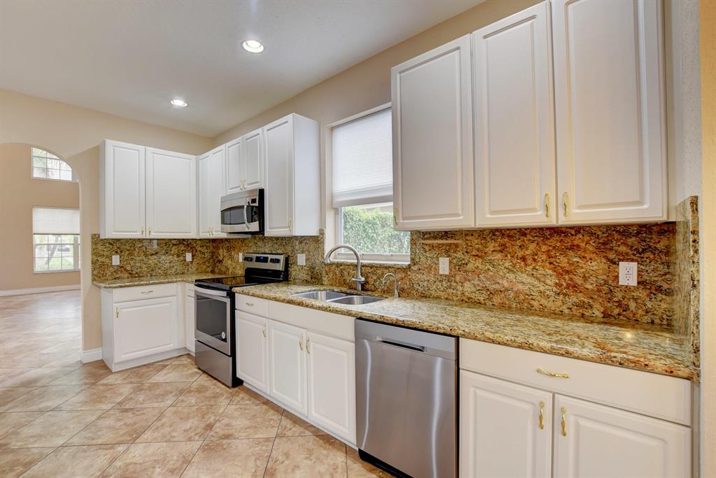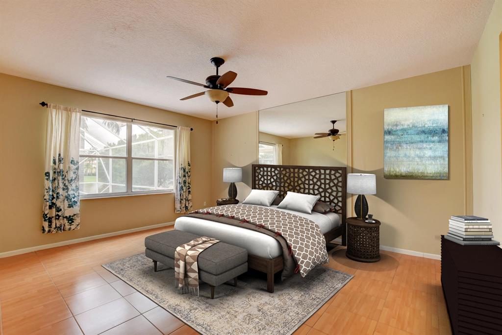 NEW PRICE IMPROVEMENT ON THIS LARGE HOME IN BOCA FALLS!! Shield Essential Home Warranty included with purchase! 4 Bed, 3.5 Bath, Lake Front home with top rated schools. Warm caramel tile throughout the first floor, and eye catching Brazilian Cherry Wood Flooring on the staircase, continues throughout the 2nd floor. The kitchen is perfect for entertaining, with granite counters, white wood cabinets, and stainless steel appliances. The impressive Master Bedroom is on the first floor, with dual walk in closets, and master bath with soaking tub, separate shower, and upgraded vanities. Half bath totally remodeled. 3 additional bedrooms and two full bathrooms on the second floor, along with a huge loft area. A screened patio, with pool, overlooking the lake completes this wonderful home