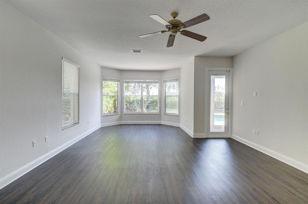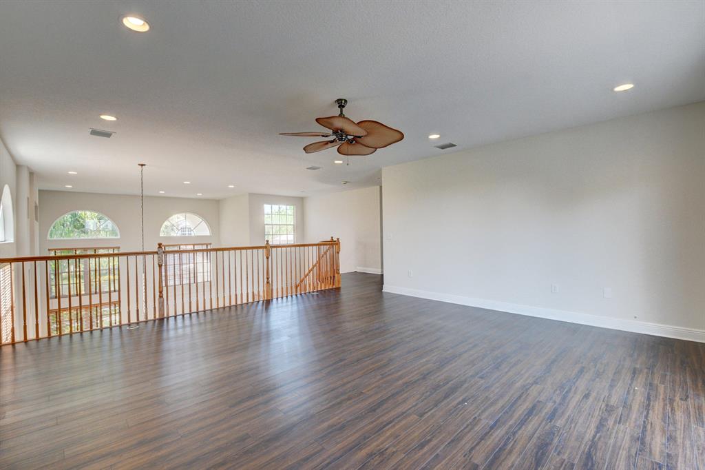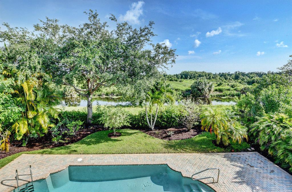 This home shows better than a model! Tons of brand new upgrades! Customized Reisling Model on a Preserve lot and canal has plenty of privacy. Freshly painted both inside and outside, this 4 bedroom, 3 1/2 bathroom with an over sized loft (can be 5th bedroom) overlooks a beautiful pool and patio. Kitchen features gorgeous wood with granite tops, upgraded appliances that opens to spacious family room. 1st floor master bedroom with large sitting area has french doors that open to pool area. Ceramic tile is on the diagonal throughout the 1st floor. NEW dark ''wood like'' flooring in all bedrooms and bathrooms, NEW built out closet in master bedroom. NEW bathroom vanities . Light and bright ...HOME IS A MUST SEE...MOVE RIGHT IN!!!