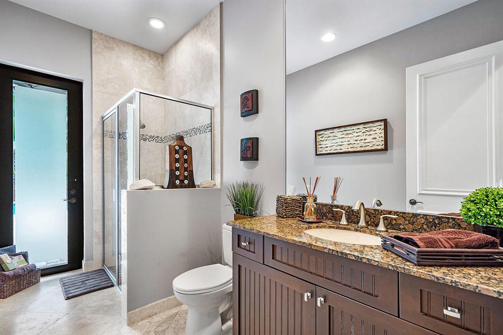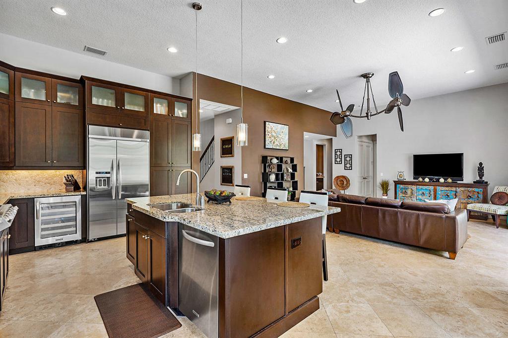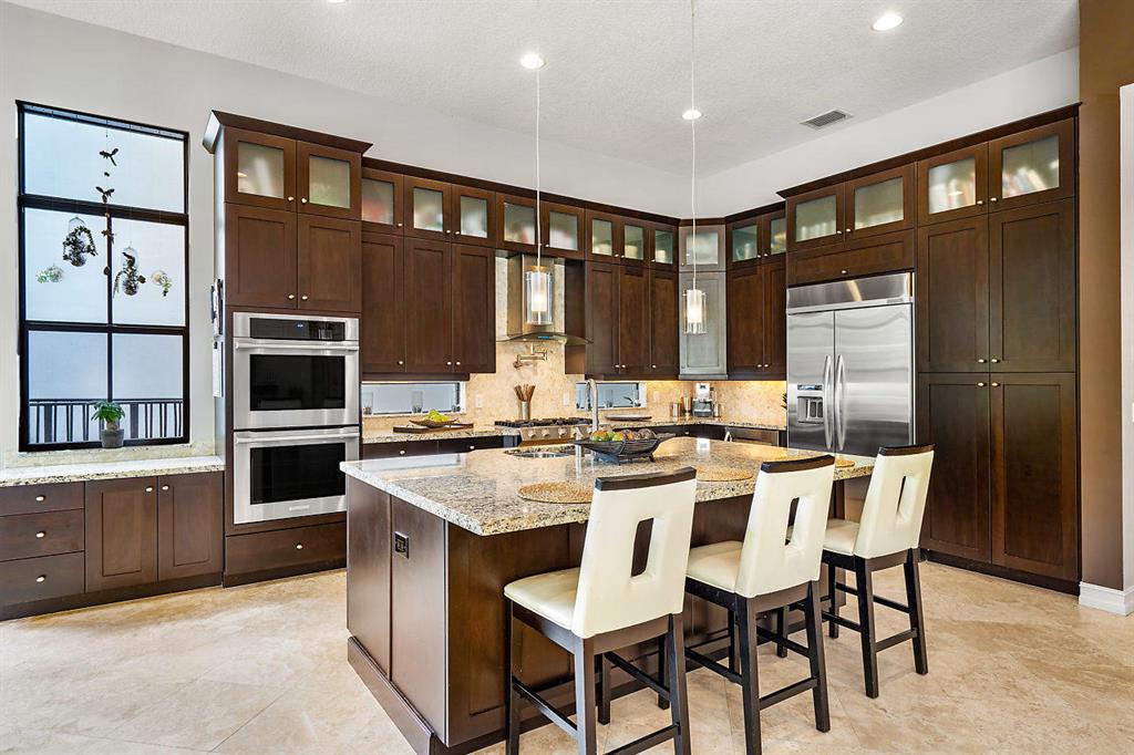 This Zen Transitional Masterpiece is appointed with the most stylish clean line appointments with warm touches. Featuring 5 bedrooms plus bonus room/office/den, including an expansive and luxurious master suite. No expense spared, with marble on the diagonal and wood flooring, stunning grey tones, driftwood feature wall in Dining room, and a gourmet kitchen with top of the line appliances, river rock backsplash, and granite countertops. Highlighted in the extraordinary master is a luxurious Master bath with a Jacuzzi tub, separate vanities with marble counter-tops and designer lighting, his and hers walk in closets, and a spacious sitting room. Set on a private lot with resort pool, impact glass, and full home generator. Phenomenal home with a cool flair.