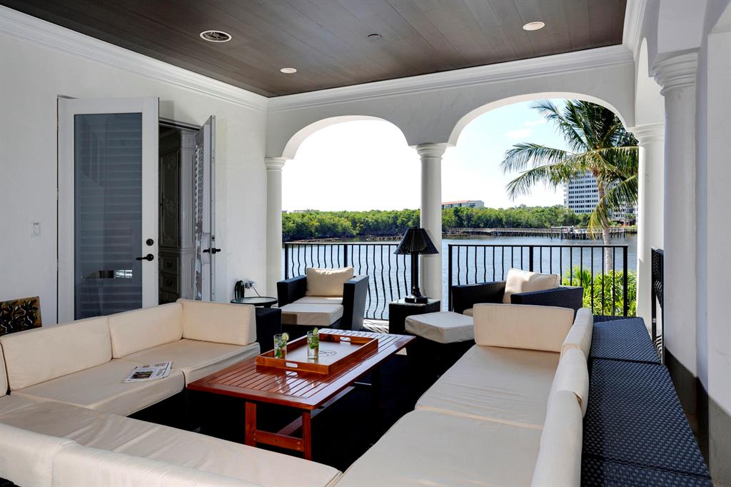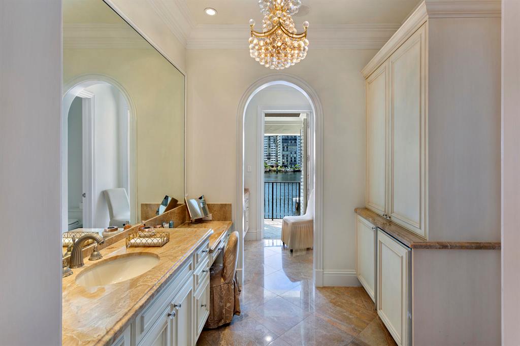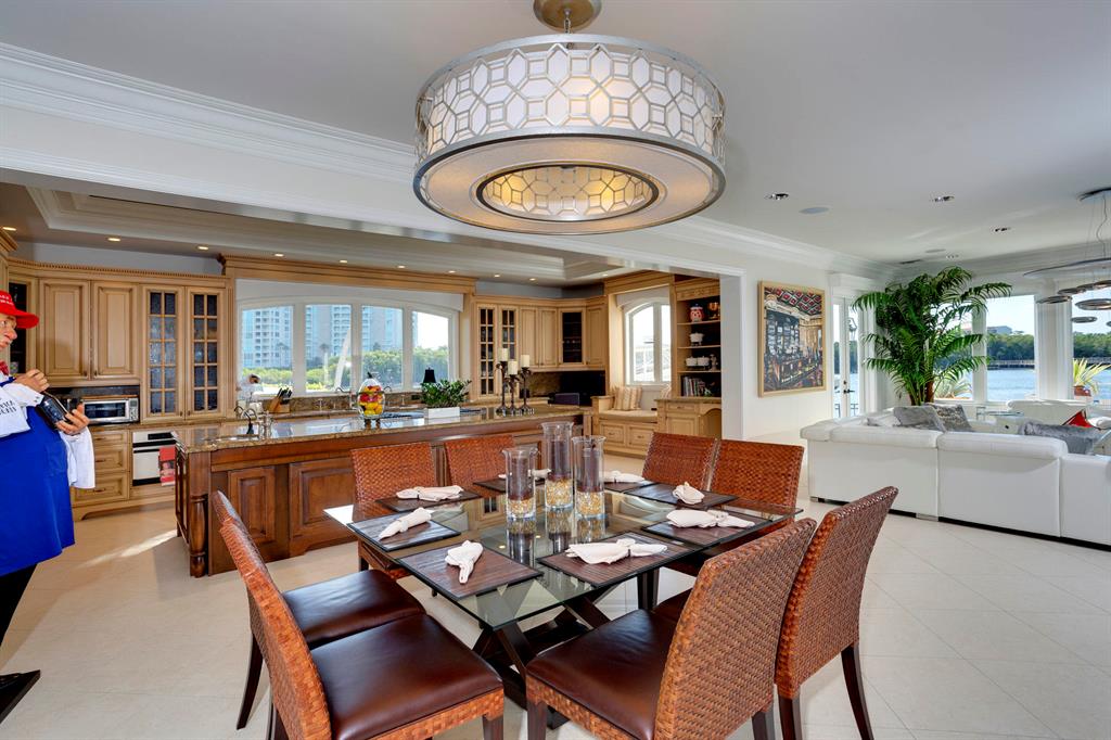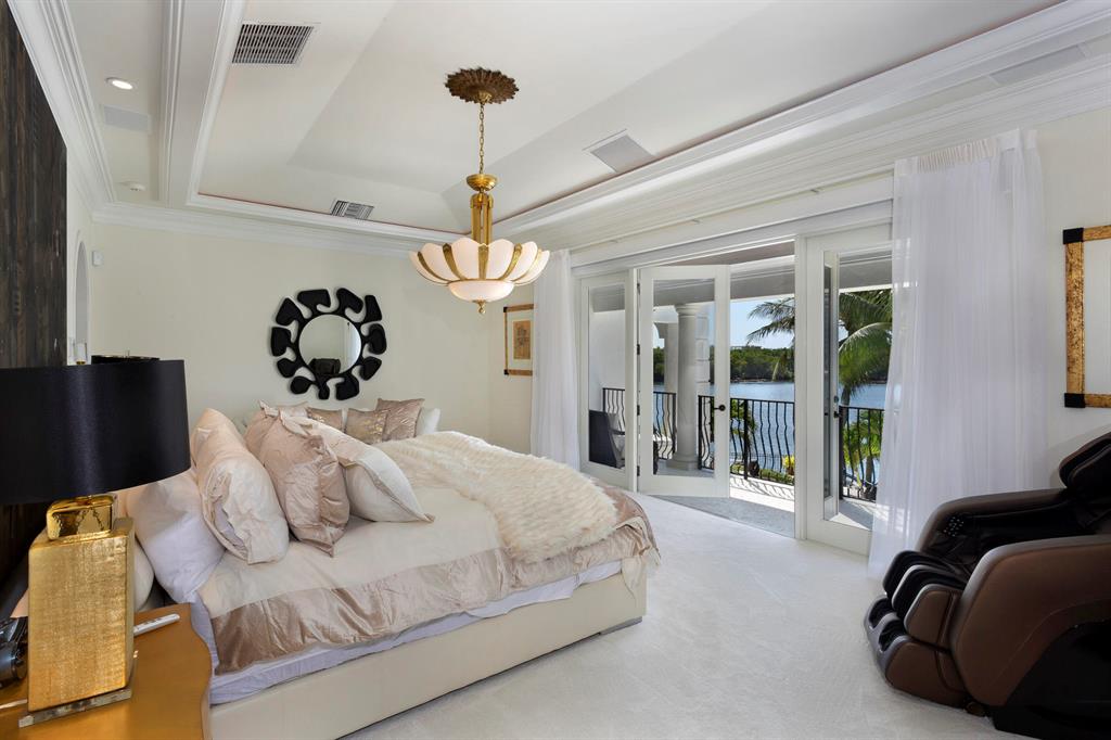 This impressive home is sited on a Prime Intracoastal Point Lot with 227' of wraparound waterfrontage with unobstructed views! Comprised of over 9,000+/- sq. ft. (6,600+/- under air), the bright interior features a gourmet waterfront kitchen open to the family room, a two story living room, grand dining room and a rich wood-paneled library/den all with stunning views. Upstairs, 3 large family en-suite bedrooms share a beautiful waterfront den and loggia. The private spacious master wing has its own private terrace and amazing water views. An infinity edge pool and spa, two covered loggias and multiple outdoor terraces provide resort-like entertaining space, all overlooking the 122 +/- ft. of protected dockage for a large Yacht!
