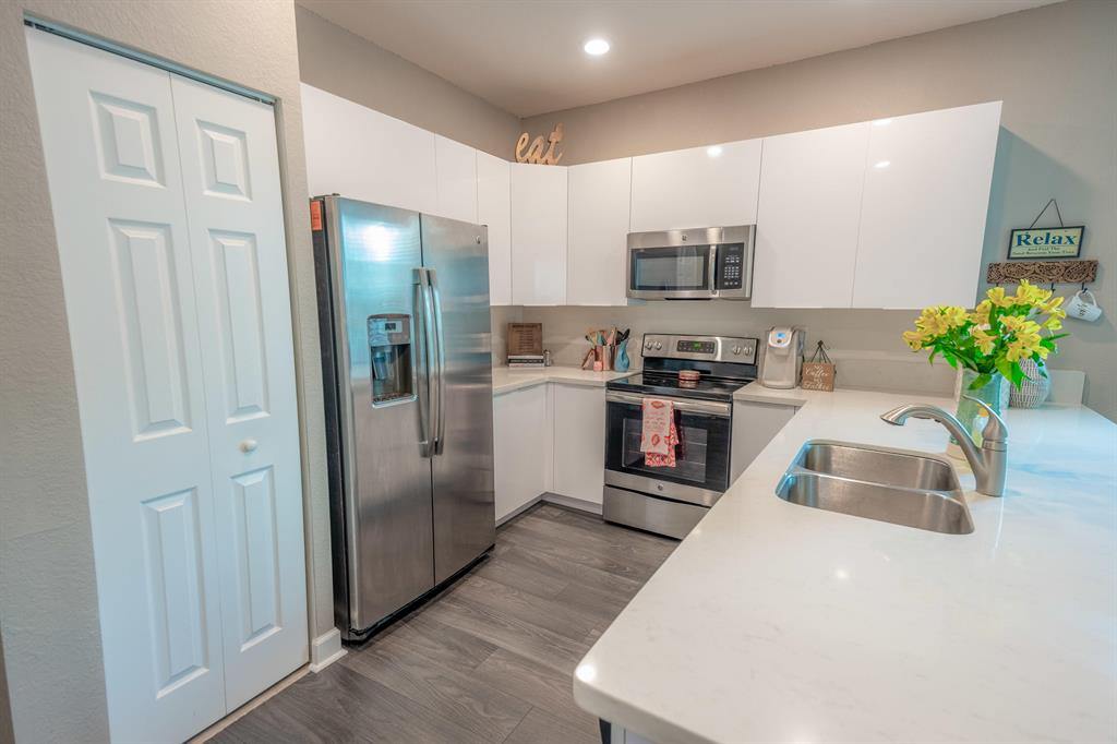 The only corner unit available! 3 Bedroom 2.5 Bath Beautifully maintained townhome located in the gated community of Charleston Commons. Built in 2016 This home has wood laminate floors throughout, all the upgrades imaginable in the kitchen with large quartz counter top, stainless steel appliances and european style cabinetry. Floor plan includes separate formal living room, open kitchen to the family room, powder room downstairs and 3 bedrooms upstairs accompanied by 2 full bathrooms. Charleston Commons has a pool, play ground, ample green space and is conveniently located just a few blocks south of the new ballpark of the palm beaches. This is a beautiful corner unit that looks and feels brand new!
