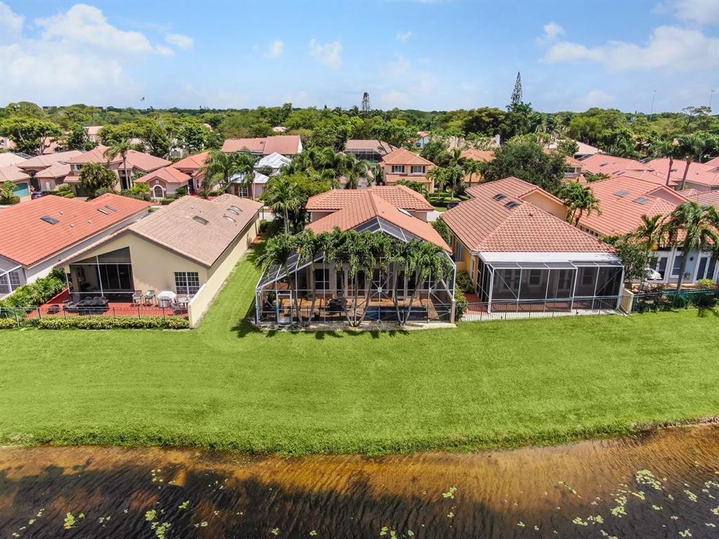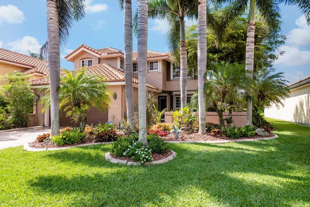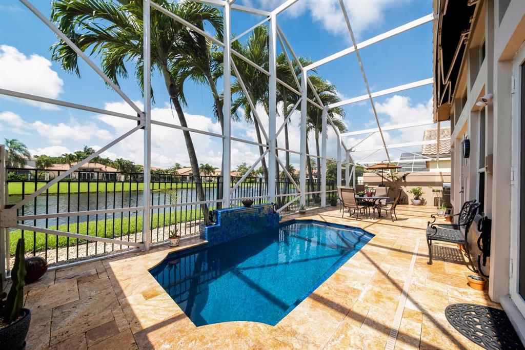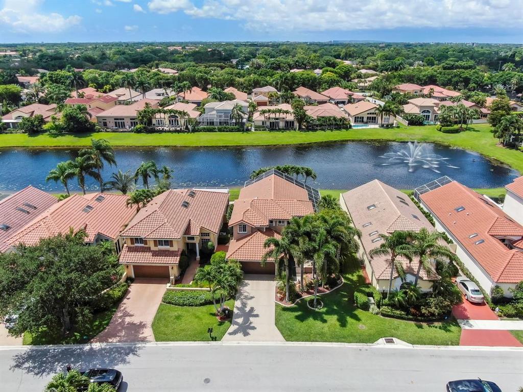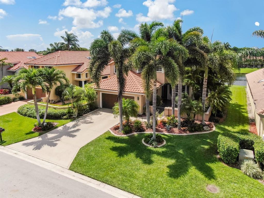 Welcome home to peace of mind with an American Home Shield Warranty! Striking in scale and luxury appointments, this stunning home offers a premier Boca lifestyle. This well maintained 3 bedroom, 2.5 bath lakefront home has a one of a kind lot in Santa Barbara. A relaxing Zen Garden courtyard with a custom waterfall entrance leads you to the foyer where you will notice the abundance of natural light with transom windows and volume ceilings. Entertain in style in the great room or dining room with French doors that lead to the patio. State of the art kitchen features 42'' cabinets with pull out shelving, granite & stainless-steel countertops, granite backsplash, stainless steel appliances and a slide in double oven. French doors open to outdoor bistro sitting area off the kitchen.