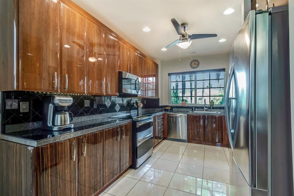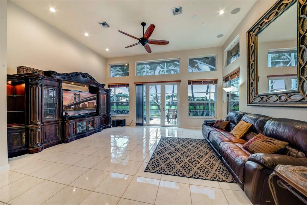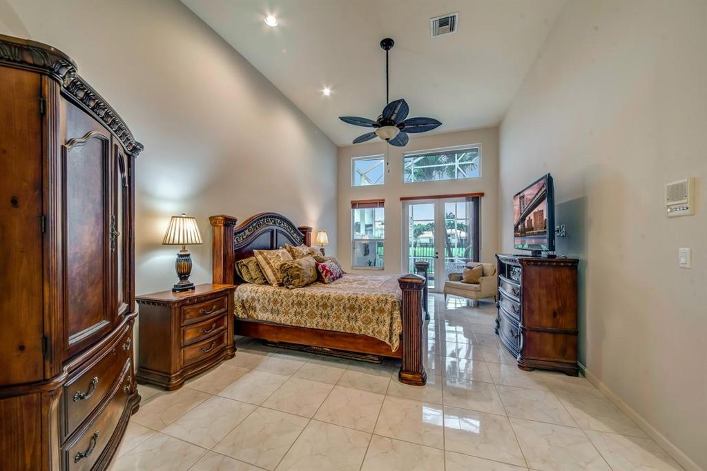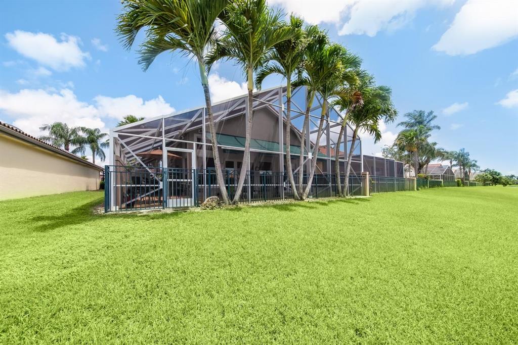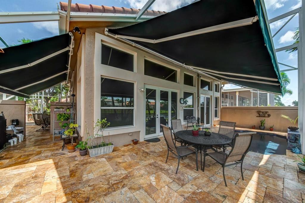 Welcome home to peace of mind with an American Home Shield Warranty! Striking in scale and luxury appointments, this stunning home offers a premier Boca lifestyle. This well maintained 3 bedroom, 2.5 bath lakefront home has a one of a kind lot in Santa Barbara. A relaxing Zen Garden courtyard with a custom waterfall entrance leads you to the foyer where you will notice the abundance of natural light with transom windows and volume ceilings. Entertain in style in the great room or dining room with French doors that lead to the patio. State of the art kitchen features 42'' cabinets with pull out shelving, granite & stainless-steel countertops, granite backsplash, stainless steel appliances and a slide in double oven. French doors open to outdoor bistro sitting area off the kitchen.