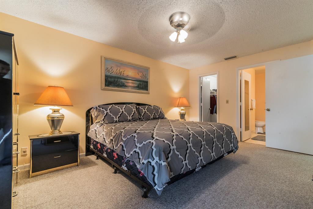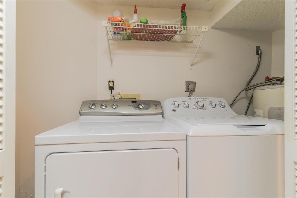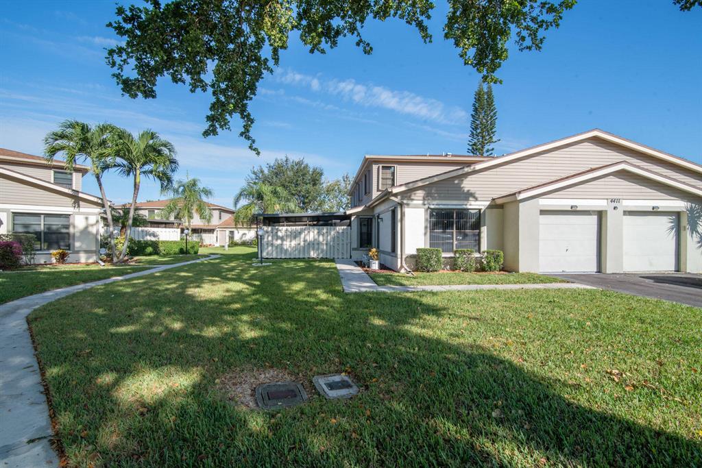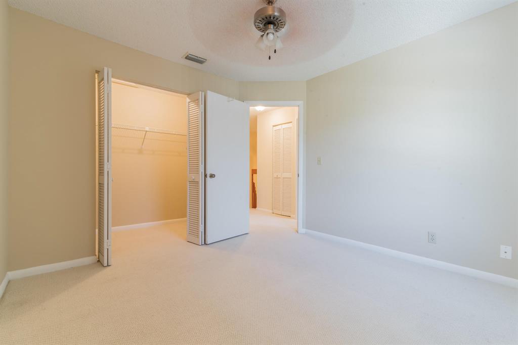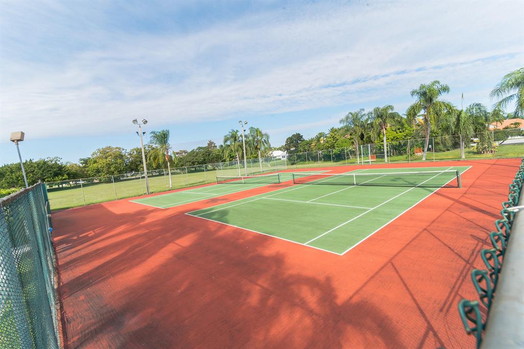 Fully Furnished and Move in Ready! Near schools plus lots of community amenities! Bathed in natural light, featuring storm shutters, large screened patio with Kitchen & Master Bedroom access, gleaming tile, plush carpet, ceiling fans inside & out, 2 Flat panel TVs, window blinds, auto garage opener, Kitchen appls + W/D. Community clubhouse w/Olympic sized pool, gym, party rm, tennis/basketball/racquetball courts plus private satellite pool. HOA includes exterior maintenance & building insurance.