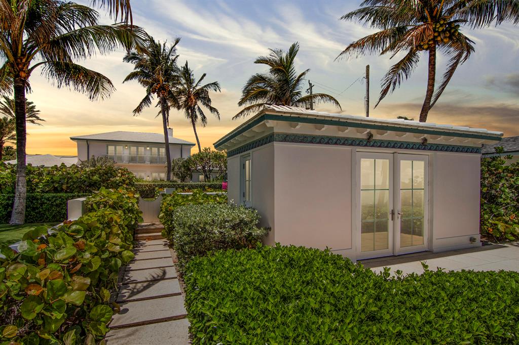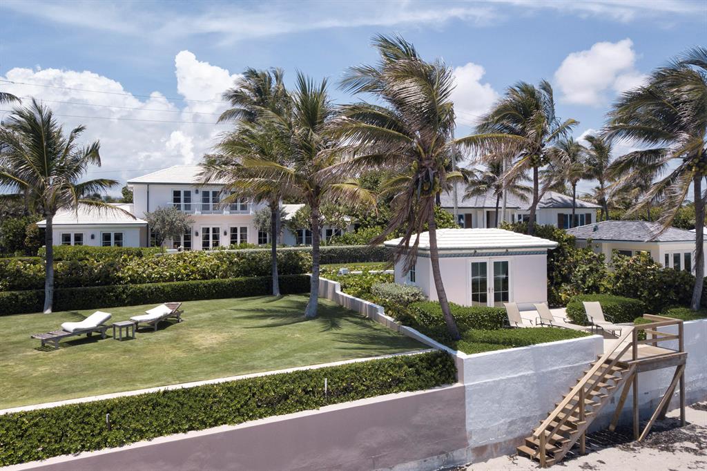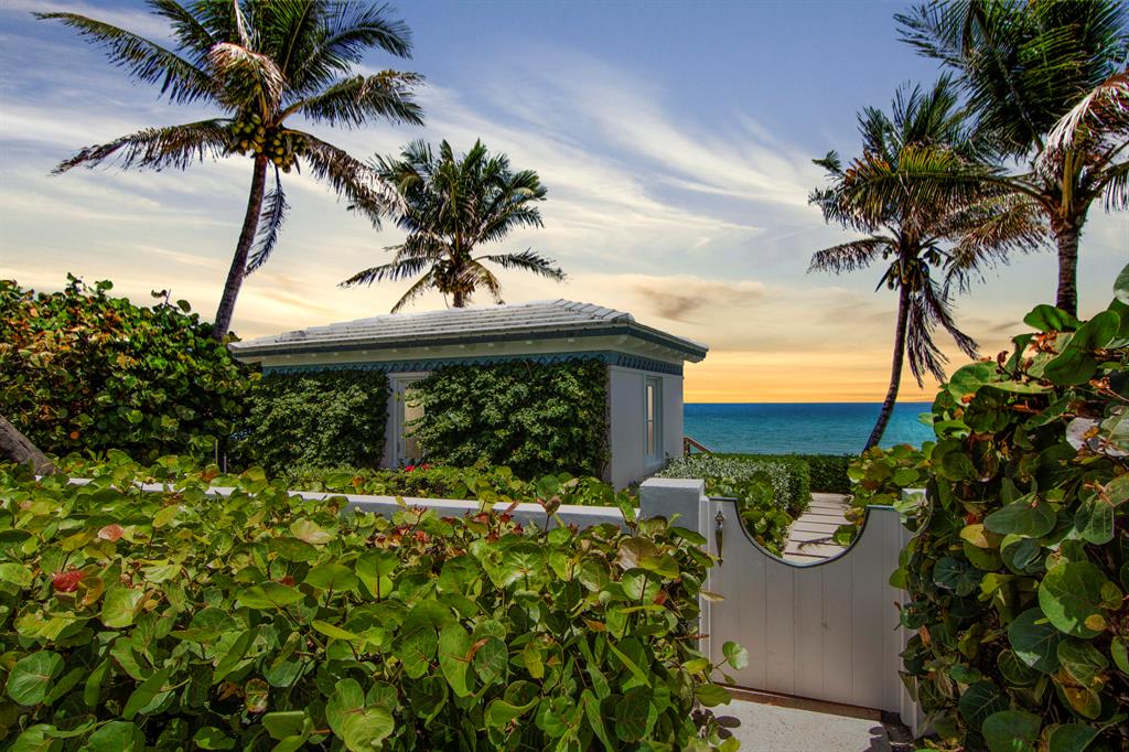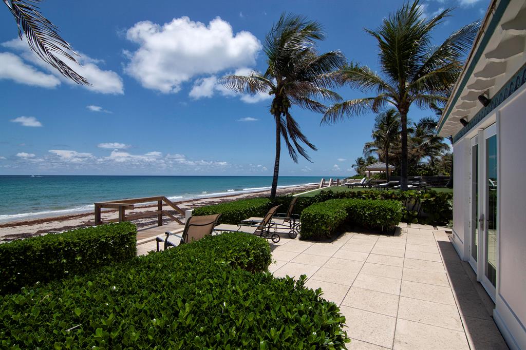 Classic, elegant Bermuda beach house with great ocean views, a private beachfront cabana and separate guest cottage. Flowing commodious rooms with soaring ceilings grace the home. Impact French Doors open to an abundance of terraces overlooking the ocean to the east and private pool to the west. Amenities include a 48 Ft lap pool, library, fireplace, family room, and 3 car garage This inviting property is beautifully landscaped and well maintained . Its a rare island paradise at the edge of white powder beaches and the ocean's epic beauty... on the North end of Palm Beach. Outstanding beachfront value.