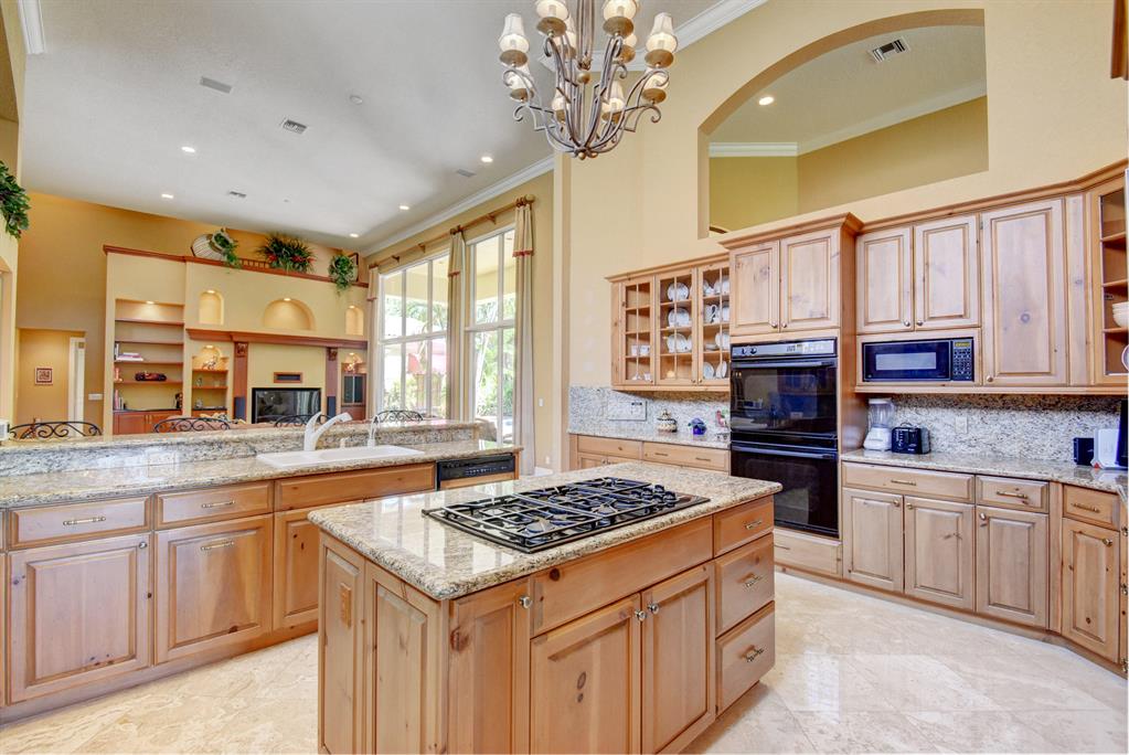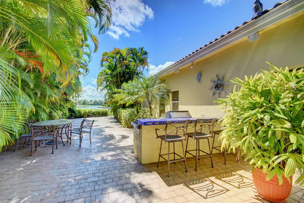 Stunning courtyard with every attention to detail, 5BR/6BA, Master down with office and guest bedroom. Exquisite and immaculate oversized courtyard home with extensive views of lake and golf. Gorgeous sunsets!Courtyard is a tropical paradise with extended patio bbq, outdoor kitchen and area to play basketball.Diamond brite salt water heated pool and spa. Impact glass throughout home including new beautiful glass, hurricane proof front door. Extended and enclosed family room with wood flooring and large glass windows overlooking lake and golf course. Electronic shades. Living room with gas fire place and beautiful granite bar with wine refrigerator great for entertaining. Large master suite on the first floor with french doors and views of lake and golf. Kitchen overlooking family room