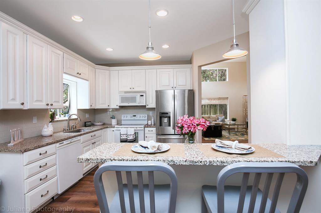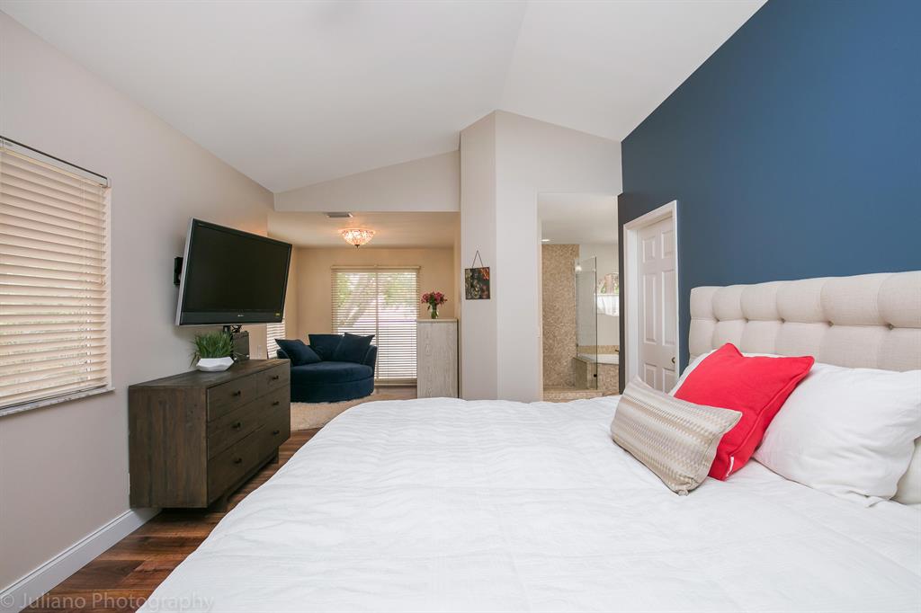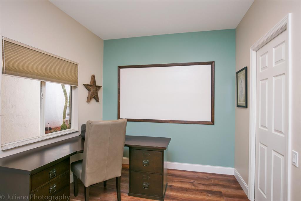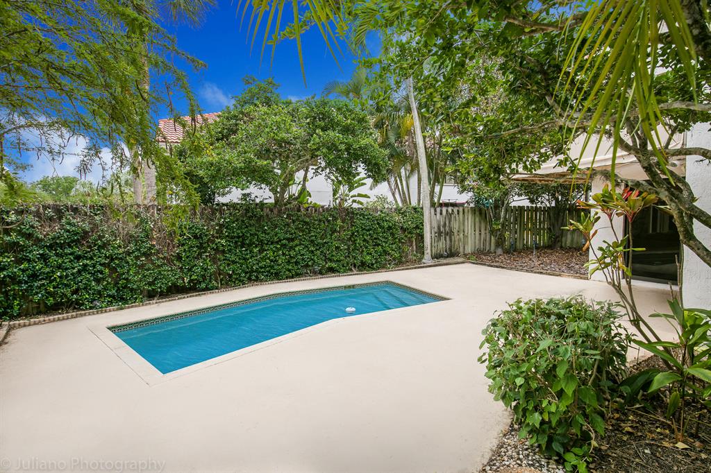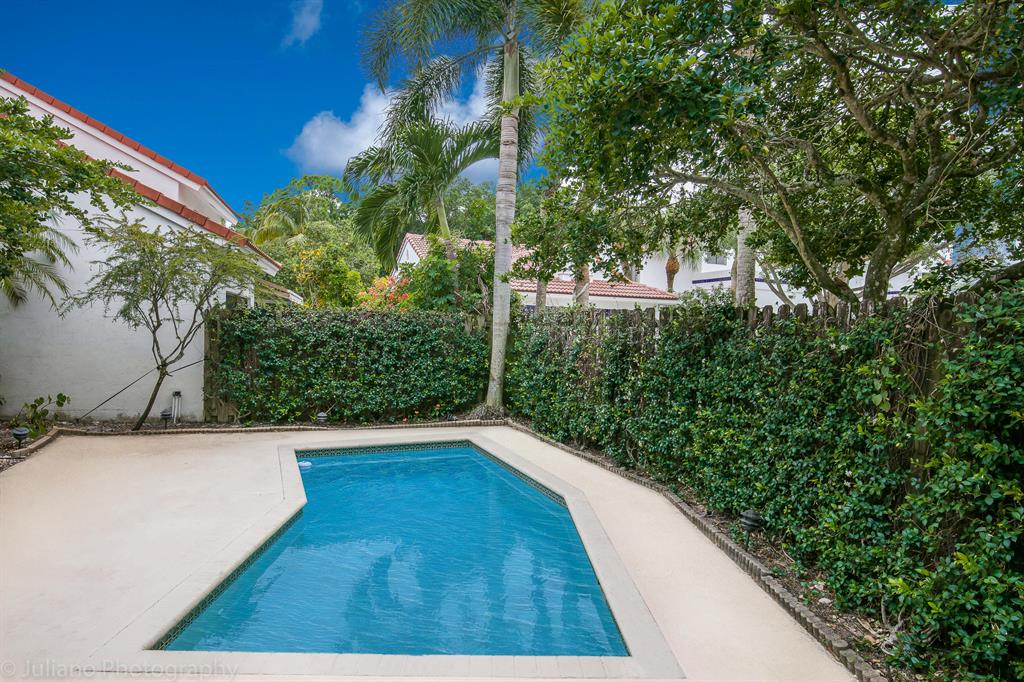 Wonderful, updated 2 story home in the heart of Boca! From the minute you walk in you feel at home. Gorgeous laminate floors through most living spaces. Lovely white kitchen with granite counters & a great den/office space tucked nearby. Vaulted ceilings & lots of beautiful light. All Bathrooms updated with marble & Granite. Master bath features double sinks & a spa tub. All bedrooms upstairs with great closet space. Laundry inside, 2 car garage. Large courtyard view from living spaces with small pool for entertaining. Extra storage space connected to the garage. ROOF 2016! Steps to the community pool & spa. Wimbledon has a 24 hr manned gate. The best schools and short distance to the Town Center Mall, Boca Center, restaurants & Sugar Sand Park. A special home in the perfect location