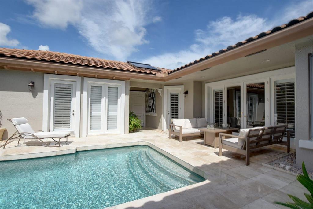 Hidden gem at the heart of Boca Raton. From the moment you walk in, you will feel the elegance and tranquility. You will find high-end touches throughout, crown molding in the ceiling as well as around the doorframes, marble floors, skylights and plantation shutters adorn this home. This courtyard model offers a lovely and very private pool and spa. The kitchen has been updated and it features granite counter-tops and back-splash, and stainless steel appliances. Amenities include tennis courts, a guarded gate, a magnificent clubhouse, pool and spa, billiard room, fitness room, banquet room and card room. Great location at the epicenter of Boca Raton, minutes away from the Town Center Mall, restaurants, shops and a short drive away from the beach.