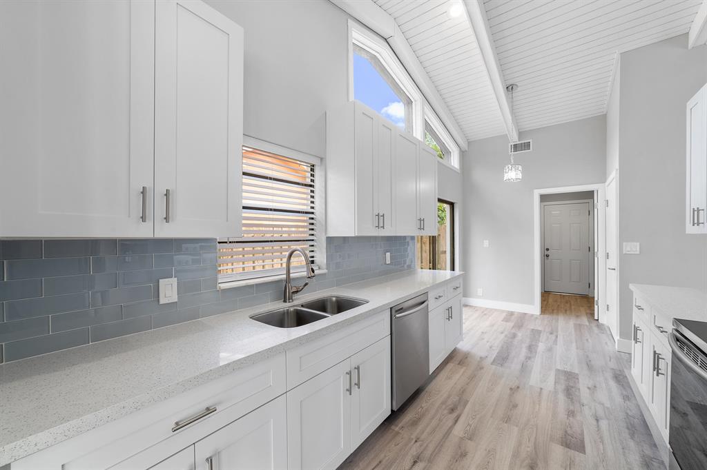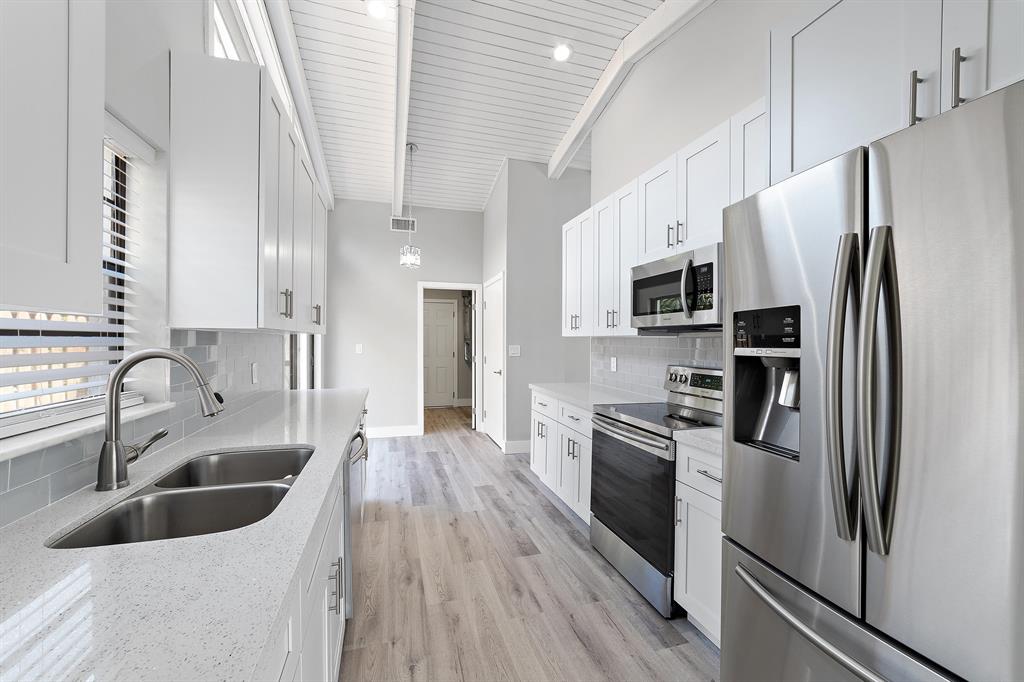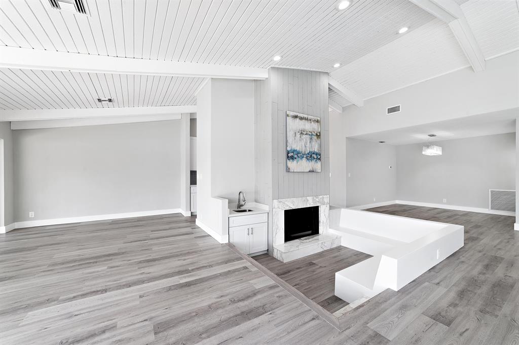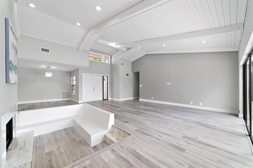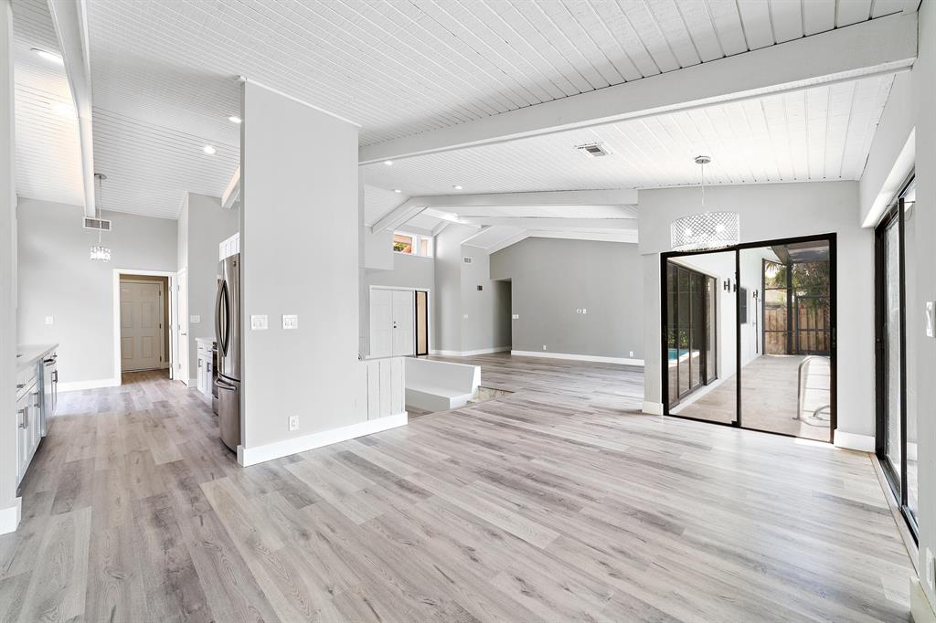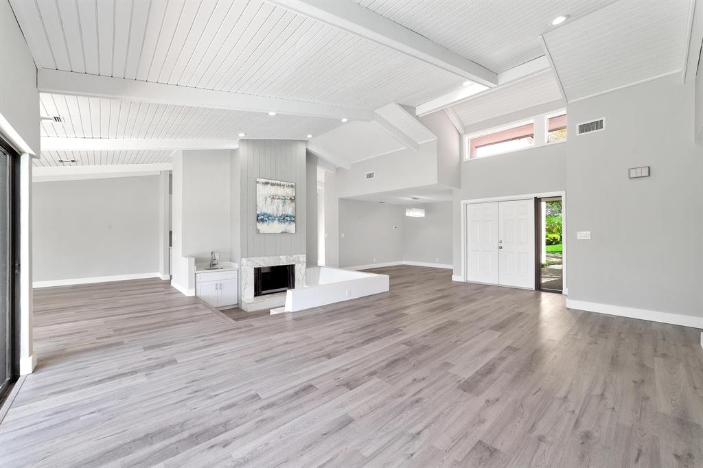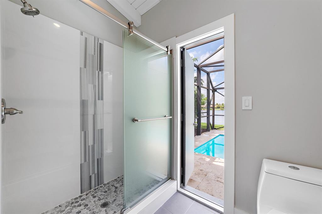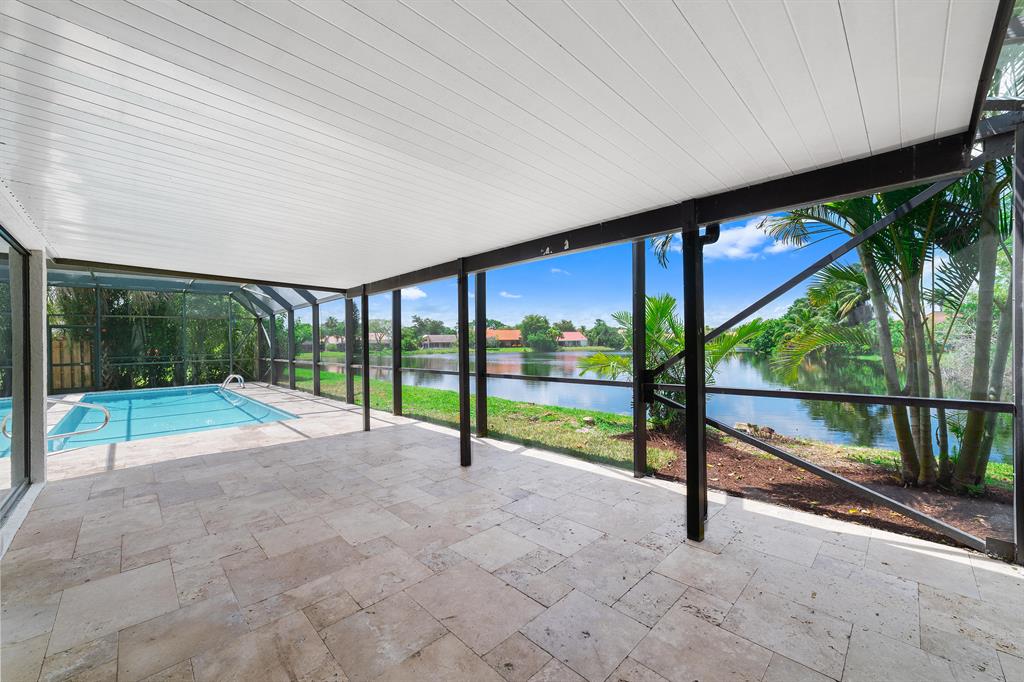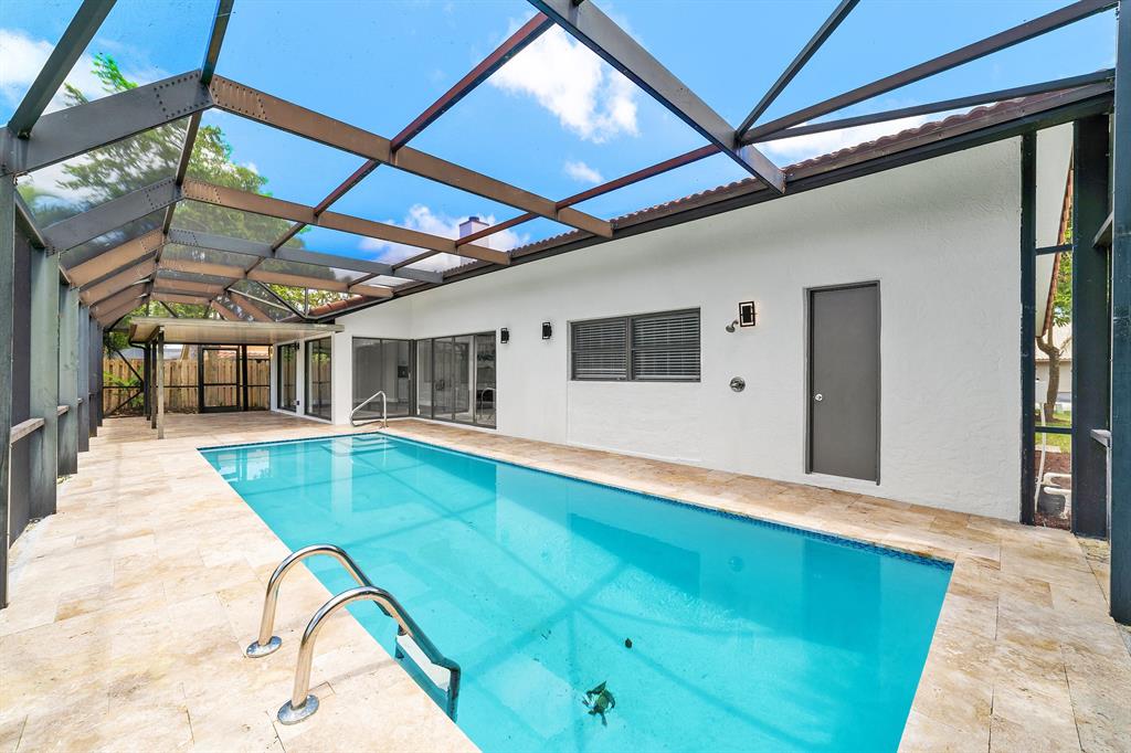 Beautifully Renovated 3 Bedroom, 2 Bath, Lakefront, Pool Home with 2 Car Garage. Home features a screen enclosed patio & porch with newly resurfaced pool, & new marble pavers. The interior vaulted beamed ceilings and large glass sliders provide an amazing view of pool & lake. The living room boasts a sunken conversation pit, with fireplace & wet bar. The remodeled kitchen has white shaker cabinets with 42'' upper cabinets for ample storage, quartz counters, glass tile backsplash & Samsung appliances. Both the master & hall baths have been updated. New waterproof luxury vinyl plank flooring runs throughout the home along with new modern style interior doors. Fresh interior & exterior paint, lush landscaped yard, new central AC. 2 car garage, laundry room. The list goes on....