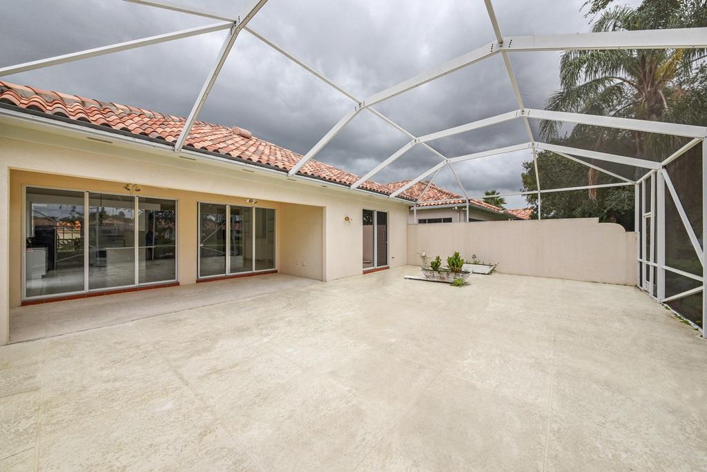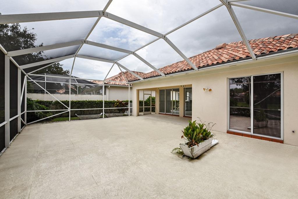 This Oakmont has a Large(30x33) Lakeside Screened Terrace with Possibilities Unlimited! It is Ready for Immediate Occupancy & has also been Newly Cleaned & Given a Fresh Coat of Paint making it the Perfect Blank Canvas to Personalize & make your own! That's only the Beginning! The Motor Court is Surrounded by Tropical Plantings & Palms Trees & Leads to the Covered Entry & the Tile Foyer that opens to the Tile Great Room with a Full Wall Entertainment Center, The Tile Dining Area with Sliding Glass Doors to a Private Patio! There is also 18 Ft. of Sliding Glass Doors that lead to a 22 Ft. Screened Lanai that opens on to that Great Screened Terrace! The Tile Kitchen, the Hub for Everyday Living or Casual Entertaining has a 1 Year Old Frigidaire Refrigerator & Newer GE Ceramic Top Range &