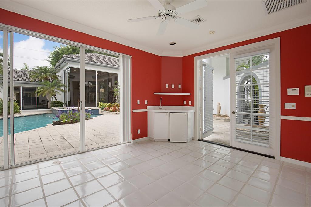 Here is an incredible opportunity to live in Grand Oaks, one of Broken Sound's most prestigious neighborhoods. Arched wrought iron gates welcome you into this magnificent 5 bedroom courtyard ranch. A fountain in the pool sets the tone for this tranquil oasis. Soaring ceilings, an open floor plan, walls of windows, a contemporary kitchen and a NEW ROOF make this a must see!